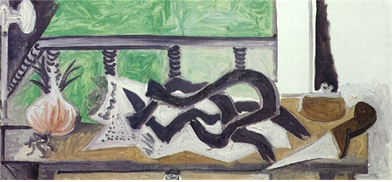 피카소의 두 번째 부인이자 마지막 연인인 쟈클린이 피카소를 위해 끓이려고 준비한 〈장어 마틀로트〉의 식재료를 피카소가 그림으로 묘사했다. 신문지 위에 올려진 장어들의 뒤엉킨 몸부림에서 격렬함보다는 왠지 모를 쓸쓸함이 느껴진다.