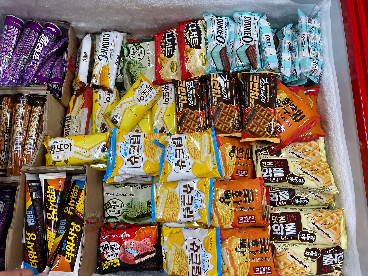 "이제 날이 추워져서 손님들이 바bar 보다는 샌드sand 류를 더 찾아요. 원래 인기가 많은 상품은 바여도 나오지만 자몽 바나 복숭아, 자두, 청포도처럼 써머시즌 상품은 가을부턴 공장에서 생산을 안 해요."