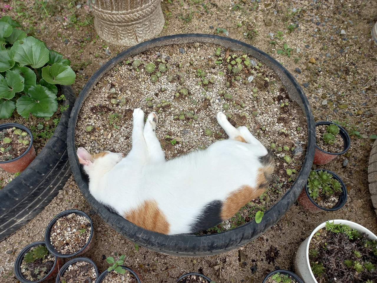 타이어로 만든 다육이 화분이지만 뿌꾸가 집으로 쓰고 있다.