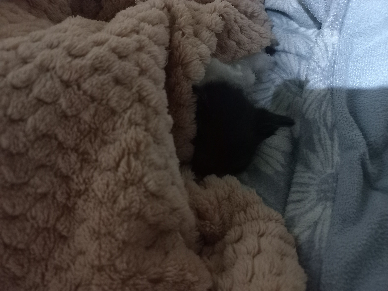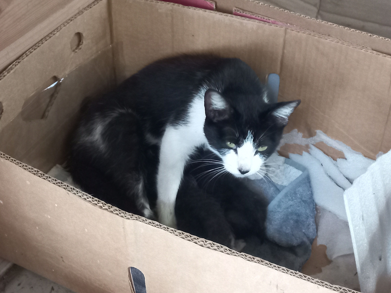 콩알이는 네 마리 새끼를 낳았다. 우리에 대한 경계는 점점 더 심해져서, 아빠는 우리가 들여다보면 아이들을 물고 거처를 옮기니 가까이 가지 않는 것이 좋겠다고 했다. 우리는 모두 매우 조심했다. 하지만 콩알이는 안심하기 어려웠는지 털이 까만 네 마리 새끼들을 하루가 멀다하고 이리저리 옮겨 다녔다. 콩알이와 비슷한 턱시도가 둘, 까맣지만 고등어태비 고양이들처럼 살짝 무늬가 보이는 새끼 하나, 완전히 새까만 새끼 하나였다.