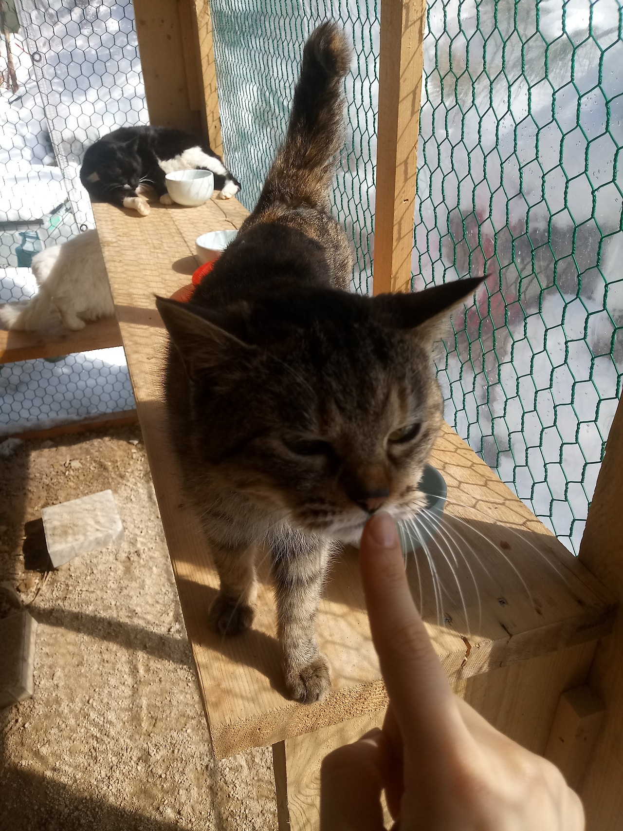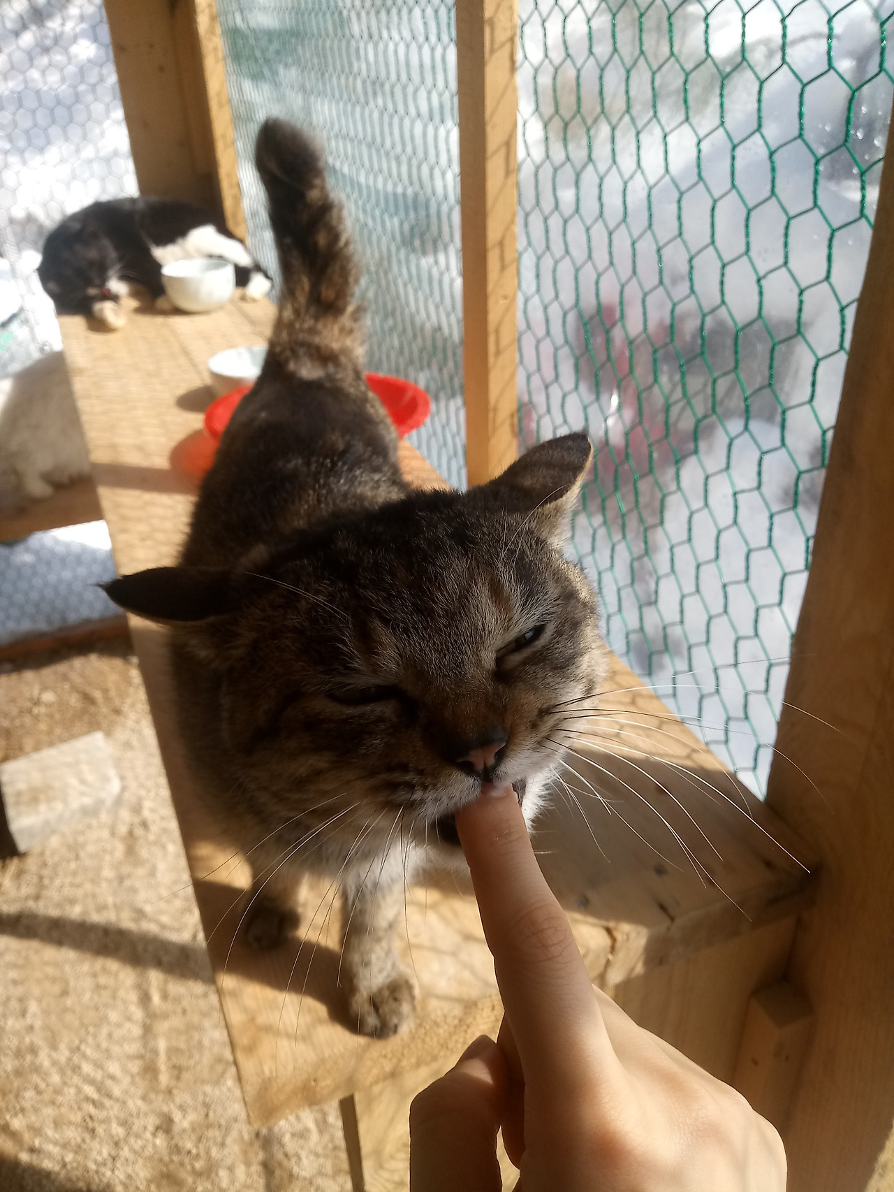 손만 닿아도 골골송을 부르며 손에 머리를 이리저리 부비는 건 꼭 엄마인 꼴매를 닮았는데, 몇 번 실내생활도 했지만 쉽게 적응하지 못하고 옥상 또는 시골 고양이집을 더 좋아했던 건 길고양이였을 아빠를 닮은 것 같다. 안기는 것도 유난히 싫어했다. 꼴매는 꼭 사람이 되고 싶어 하는 고양이 같았는데, 산이는 고양이인 채로 즐겁게 살아가는 고양이처럼 보였다. 그러면서도 사람이건 고양이에게 건 다정하고 살가웠다. 산이는 건실한 도도함이 매력적인 고양이였다.
