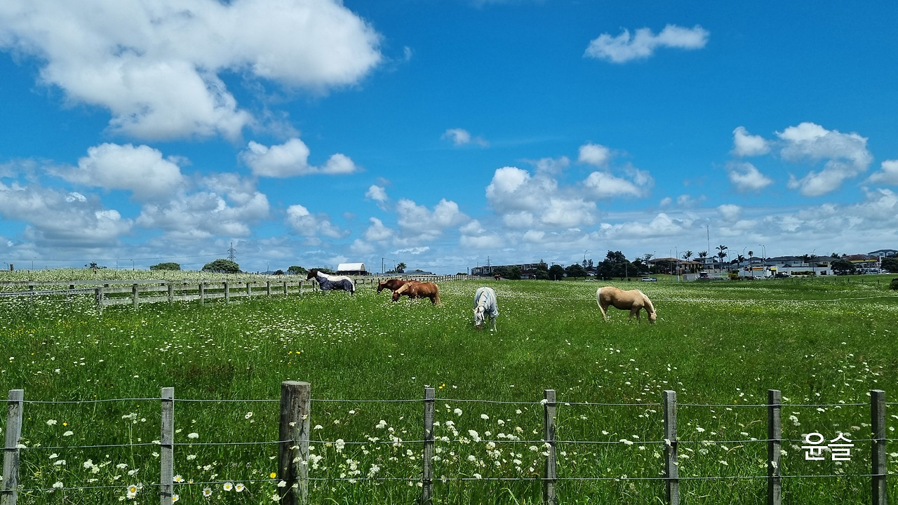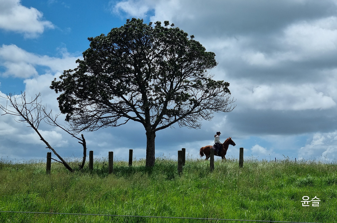 오클랜드의 숙소 인근 사거리에는 버스정류장이 있었다. 정류장 바로 뒤편엔 초원이 펼쳐져 있었는데, 어느 날 그곳에서 말을 타는 사람을 보게 되었다.