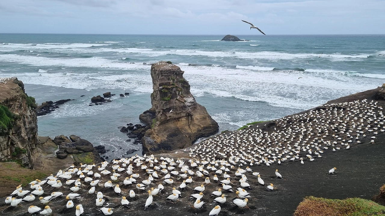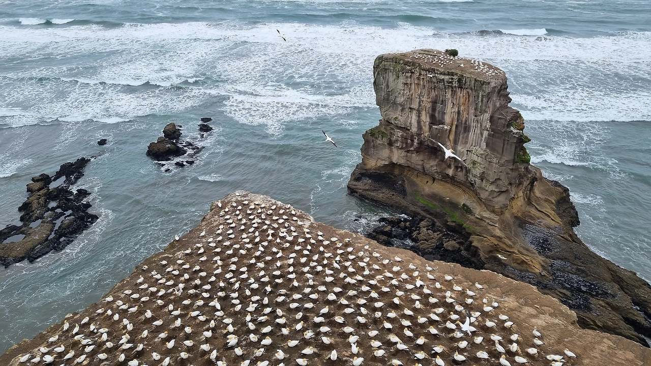 무리와이 비치는 가넷 서식지로, 매년 8월부터 3월까지 이곳에서 알을 낳고 새끼를 키우다, 새끼가 어느 정도 자라면 호주로 대이동을 한다고 한다. 한 쌍의 새가 한 개의 알을 낳으며 부모 새들이 번갈아가며 둥지를 돌본단다.