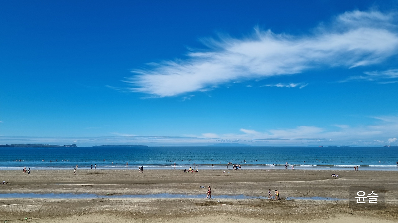 전에 한인민박 사장님과 이곳에 놀러 온 적이 있었는데, 그날 나와 남편은 롱베이의 매력에 푹 빠져버렸다. 바닷가 주변으로 넓은 공원이 있어, 사람들은 잔디밭에 텐트를 치고 여유로운 시간을 보내고 있었다. 시야를 막는 것 없이 길게 뻗은 모래사장과 바다 덕분에 눈과 마음이 동시에 시원해졌다. 평화롭고 아름다운 해변 마을에 매료되어, 마지막 주는 무조건 롱베이에서 지내기로 마음먹었다.
