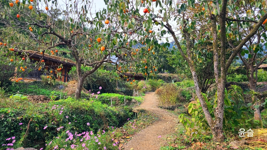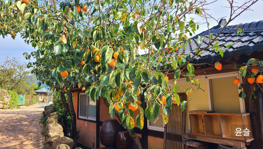 감이 주렁주렁 매달린 감나무를 이 집 앞마당에서, 저 집 뒷마당에서, 심지어 가로수로도 만나며 최참판댁 표지판을 따라 길을 올랐다.