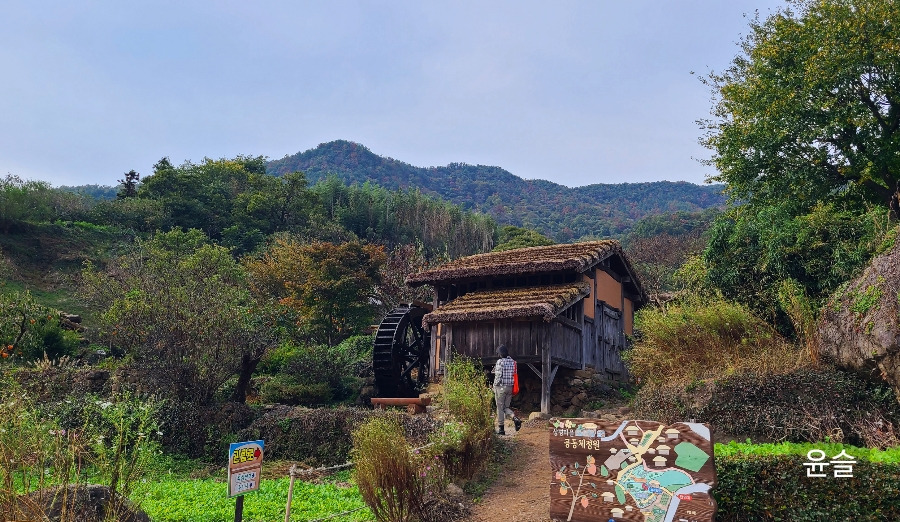 인위적인 드라마 세트장일 거라 생각했는데, 자연 친화적인 작은 마을이 나왔다. 모형이 아니고 실제로 돌아가는 물레방아 집에서부터 관광을 시작했는데, 이때부터 핸드폰을 손에서 놓지 못하고 사진을 찍어댔다. 옛 집들과 감나무, 박, 코스모스가 이루는 가을의 조화가 아름다워 마치 전래동화 속 한 장면으로 걸어 들어가는 느낌이 들었다. 각 집 벽에는 이곳이 '토지'의 등장인물 중 누구의 집이며, 그의 성격은 어떠하였고 어떤 삶을 살았는지 설명이 붙어있었다.