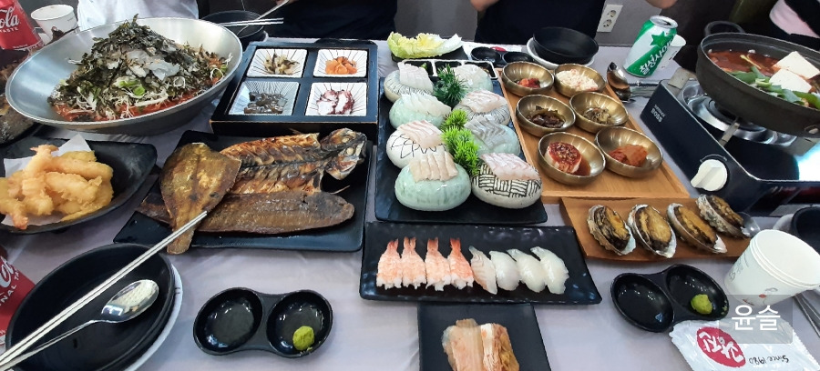 이곳은 예전에도 글을 올린 적 있었다. 진심 가성비 맛집이다. 인당 22,000원짜리 세트 메뉴를 시키면 회, 물회, 매운탕, 초밥, 생선구이에 튀김까지 배불리 맛볼 수 있다. 손님이 방문할 때 자신있게 모시고 가 한턱 쏘기에 안성맞춤 횟집이다.
