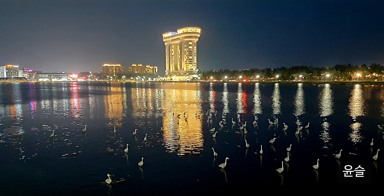 호수에선 낮에는 기러기떼를, 밤에는 두루미(?) 떼를 감상할 수 있다.