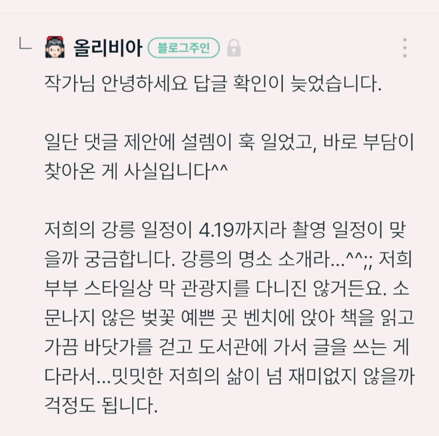 블로그 댓글을 확인하다 깜짝 놀랐다. 한 번도 생각해 본 적 없는 일이 내게 일어났다.