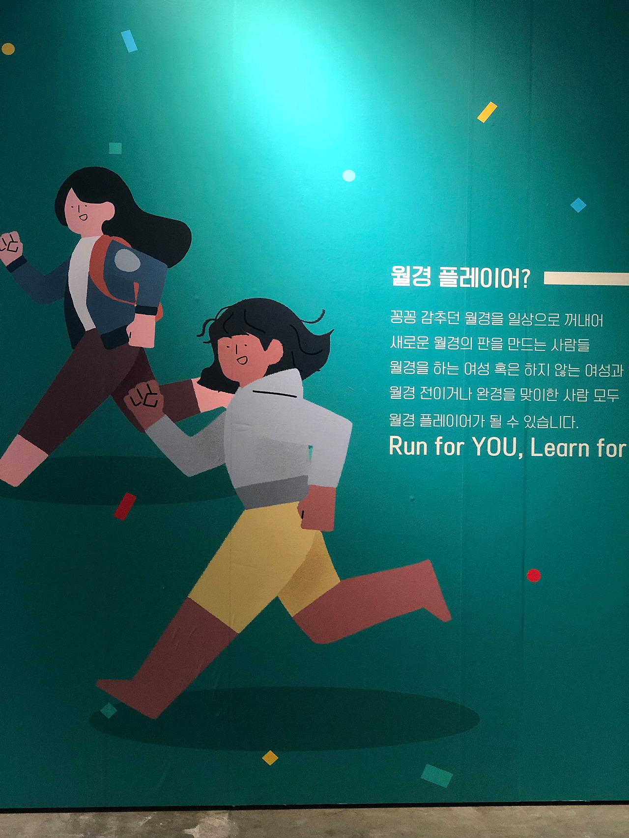 간단한 설문으로 자신만의 캐릭터가 구현되는 것부터 월경에 대해 자세히 알 수 있도록 연도별 월경용품을 소개했다. 또한 여성 개인, 여성 단체 및 조직, 여성 기업들을 월경 플레이어라고 지칭하고 이들의 다양한 활동들을 보여줬다. 이 부분이 매우 의미 있고 좋았지만, 또 한편으로는 많은 정보들이 있어서 오히려 잘 보지 않고 지나가게도 되었다. 그럼에도 기억에 남는 것이 있다면 바로 이 부분이다.