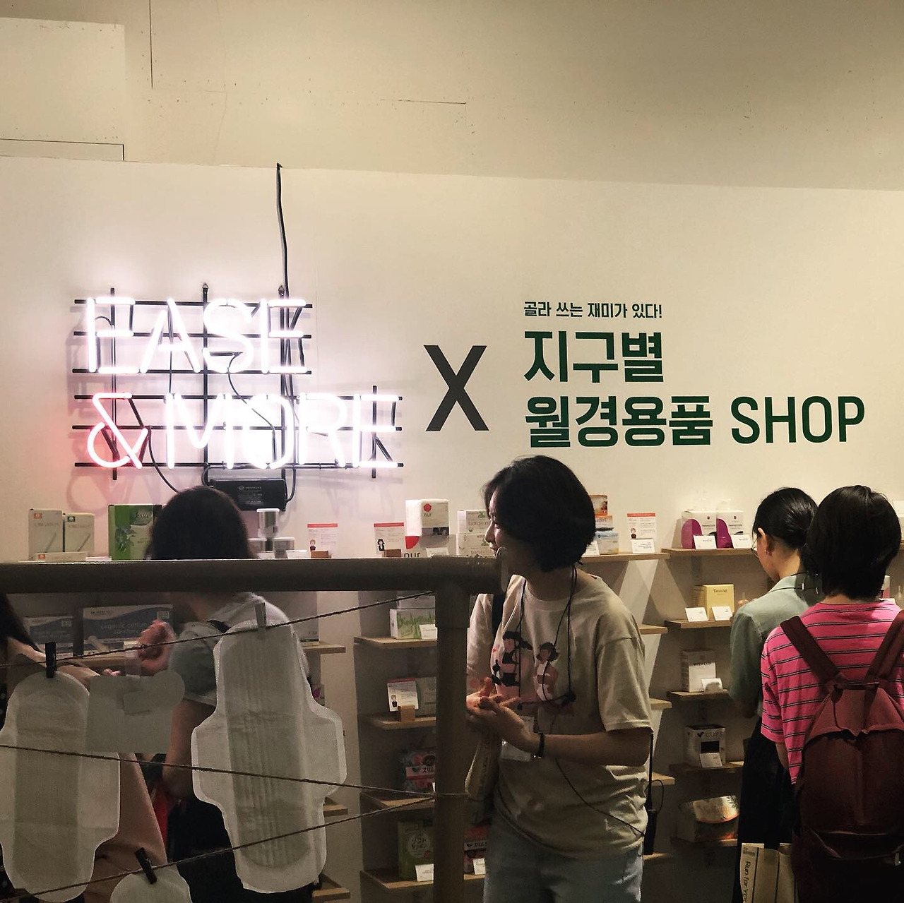 이어지는 행사장을 따라가면 새로운 구역이 시작되는데 월경용품 연구소 콘셉트의 체험존과 지구 월경용품 Shop과 더불어 참가 브랜드들이 모여있다. 기존에 이용하고 있던 브랜드부터 관심 있게 지켜보던 브랜드들이 많아 나는 신이 나서 돌아다녔다. 그중에 내가 특히 좋았다고 생각되는 브랜드들을 소개해보려고 한다.