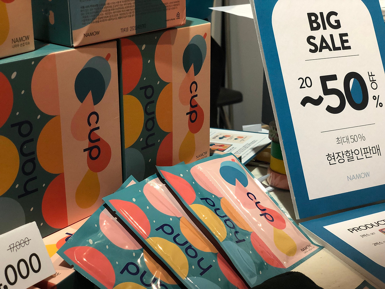나마우는 우먼을 거꾸로 표현한 이름답게 월경컵을 일상생활에서 더 편리하게 사용할 수 있도록 손컵 티슈를 제공한다. 무엇보다 눈에 띄는 디자인으로 나를 확 사로잡은 이곳! 매력적인 색조합과 월경을 표현한 거 같은 이미지가 좋았다. 만약 월경컵을 사용하고 있거나 사용할 계획이라면 나마우의 손컵 티슈가 정말 필요할거라 생각한다.