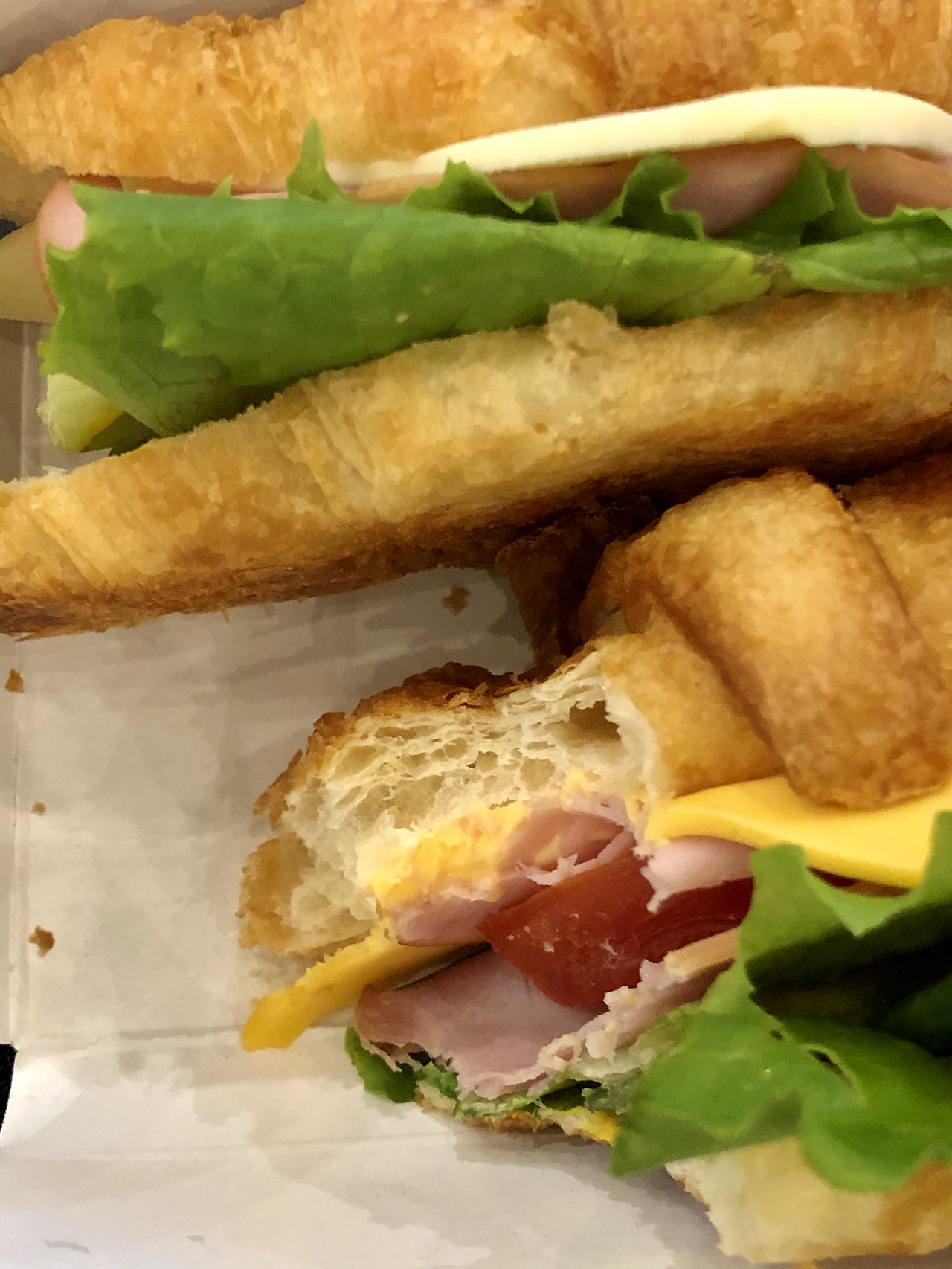 금요일 퇴근길, 그냥 집에 들어가긴 아쉽고 누굴 만나기는 지쳐 심야 영화를 예매했다. 독립 영화를 즐겨봐서 자주 이수 아트나인을 가는데 이번에 '윤희에게'를 보러 갔다. 영화는 9시 20분 시작이었고 한 시간 정도 일찍 도착했다. 아트나인에서 함께 운영하는 잇나인에서 간단히 먹고 들어가야겠다고 생각하며 메뉴를 살펴보았다. 파스타, 튀김류, 베이커리들이 있었는데 회사에서 이것저것 먹고 나온 터라 간단하고 든든한 샌드위치가 나아 보였다. 크루아상 샌드위치. 근데 메뉴 사진은 없고 재료에 무엇이 들었는지 알 수가 없었다. 미리 알려주면 좋으련만. 그래서 주문할 때 물어보고 햄이 있다면 빼 달라고 하려다가 깜빡하고 그냥 주문해버렸다.