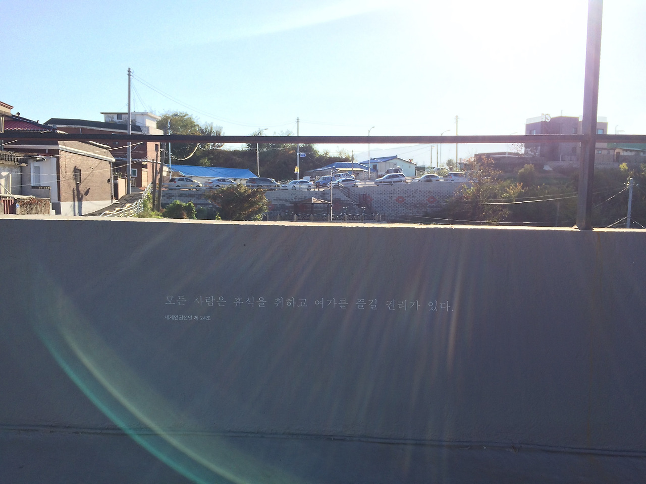 특히 옥상에서 본 글귀와 풍경이 참 인상 깊었다. "모든 사람은 휴식을 취하고 여가를 즐길 권리가 있다."라는 세계 인권선언 제24조를 보며 나의 이유 없는 떠남에 정당성을 찾은 기분이었다. 나도 모르게 나의 휴식과 여가를 제일 마지막에 두고 있지는 않았는지 반성을 하기도 했다.