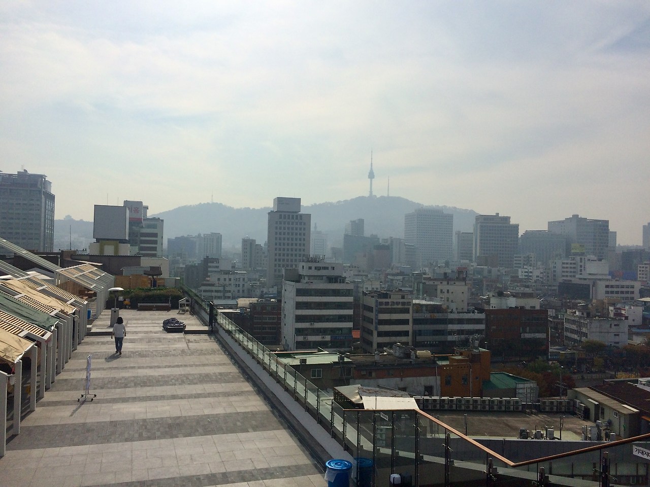 세운상가에 또 하나의 엄청난 풍경이 있으니 8층 서울 옥상의 풍경이다. 서울의 색다른 풍경을 이곳이 아니면 볼 수 없겠다고 절실히 느끼게 해 준 곳이다. 앞쪽으로는 종묘가 가득히 내려다보이며 가까운 풍경은 골목도 잘 보이지 않는 낮은 주택들이 정말 다닥다닥 붙어 있었다. 아파트에서만 살던 나에게 이러한 풍경은 너무도 생경했다. 눈앞에 있어도 눈앞에 있다고 믿기지 않는 느낌이었다. 뒤를 돌면 남산이 보였다 그리고 서울의 변천사가 담긴 듯한 건물들이 차곡차곡 자리하고 있었다. 이 8층 서울 옥상은 사방이 유리 난간으로 설치되어 있지만 공간이 막히지 않고 탁 트여있다. 이에 나무 계단를 따라 올라가면 서울을 한 아름 내려다보이는 풍경이 예술이다. 1년 전에도 이 풍경 때문에 세운상가를 잊지 못했다. 1년이 지난 지금 역시 세운상가 옥상에서 바라본 서울의 풍경을 그리워하며 이 때문에 세운상가가 활성화될 수밖에 없음을 확신했다.