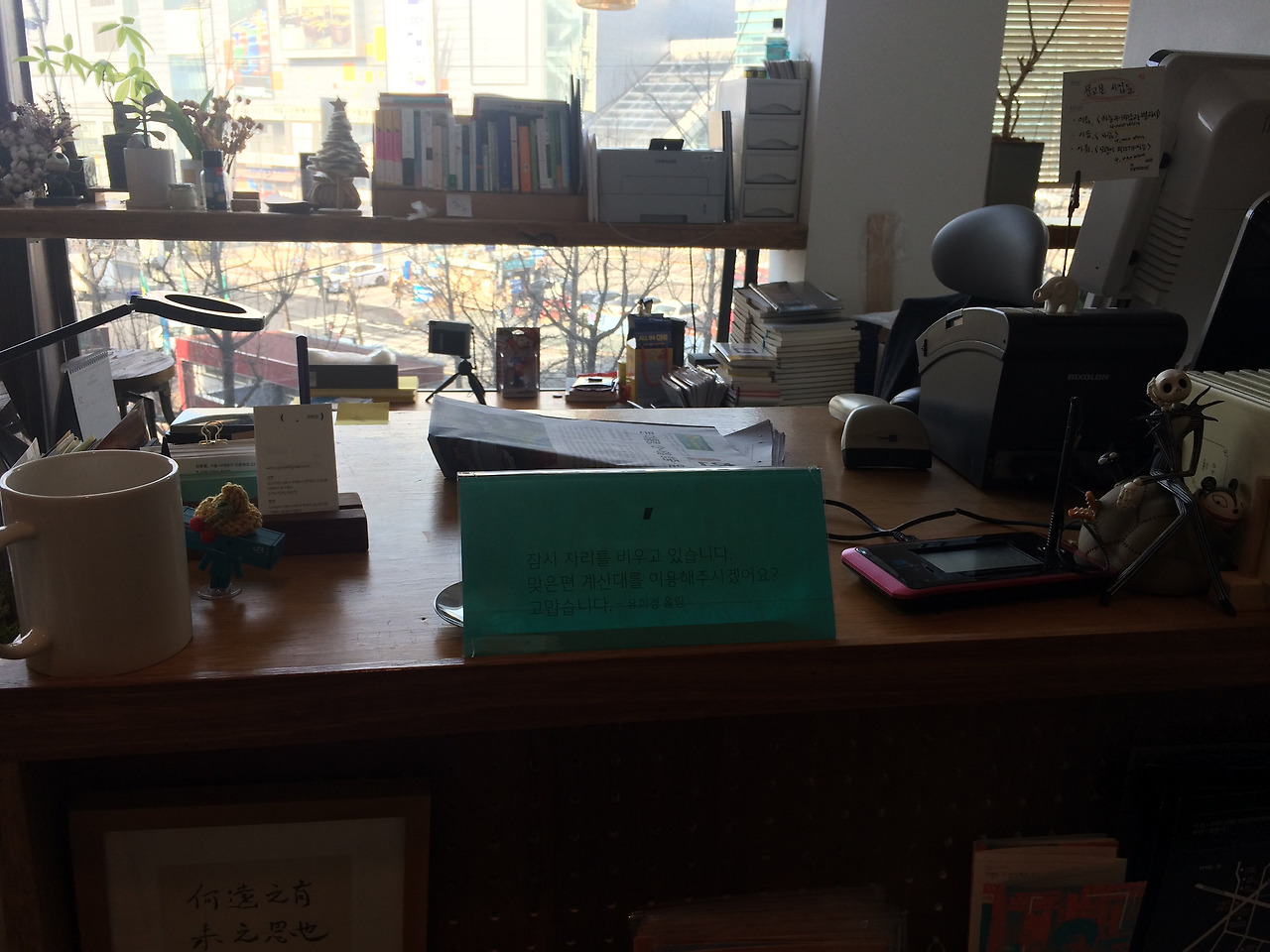 잠시 자리를 비우고 있습니다. 맞은편 계산대를 이용해주시겠어요? 고맙습니다. - 유희경 올림