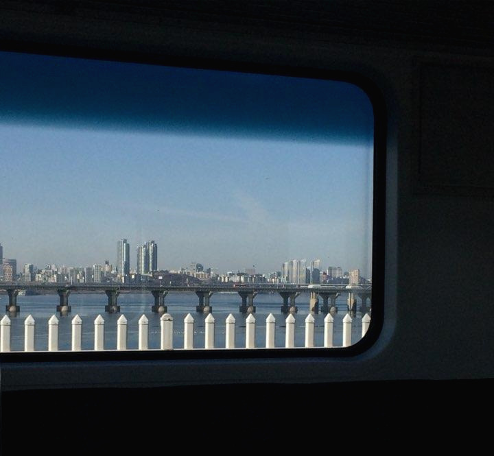 자리가 없어 손잡이를 잡고 앉아있는 사람들 앞에 서 있었다. 멍하니 창밖을 바라보다 앉아있는 사람들이 눈에 들어왔다.