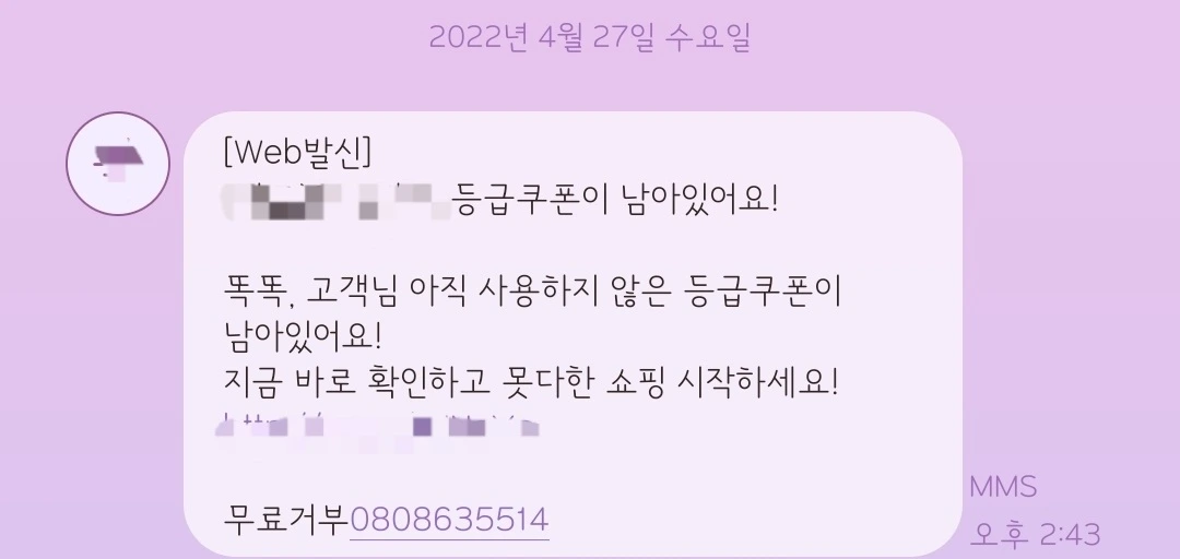그러던 어느 날 핸드폰으로 문자 한 통이 왔다. 이번 달 쿠폰이 내일모레까지만 사용이 가능하므로 빨리 사용하라는 친절한 안내 문자였다.