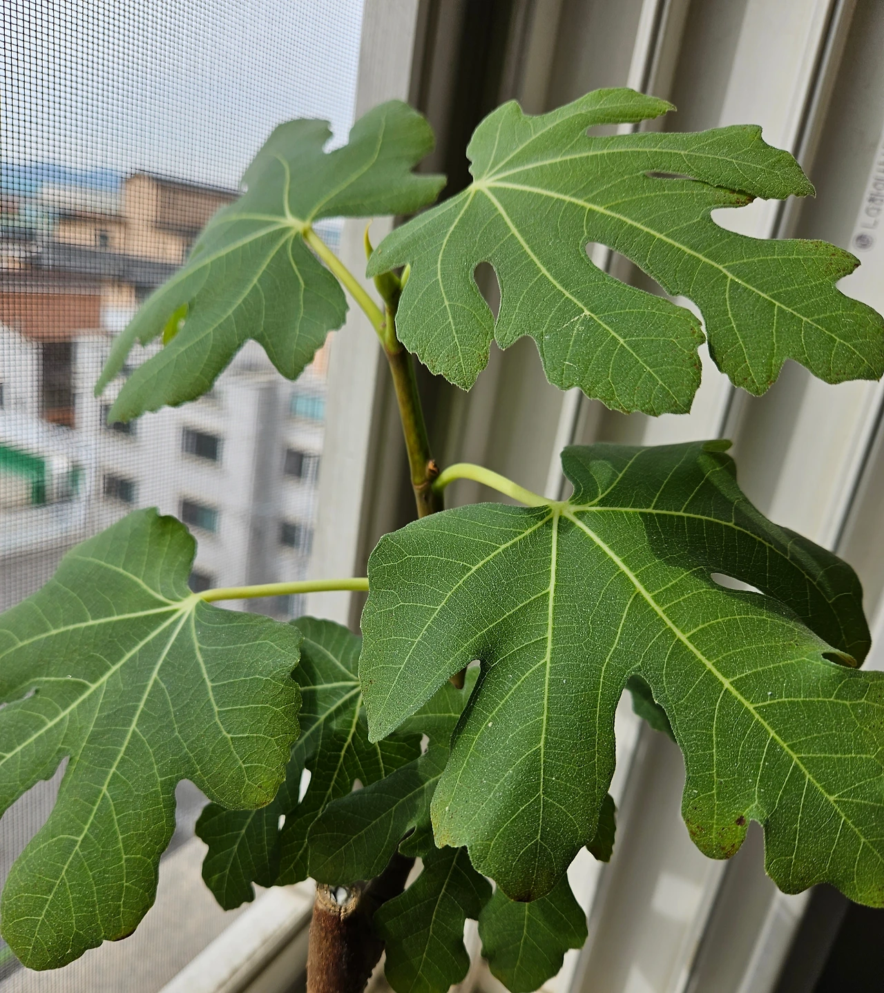 그의 탄생화라서 작년 5월 31일에 들여온 무화과 역시도 나처럼 재주 없는 식물집사 밑에서 안 죽고 잘 자라주고 있다. 이 녀석은 꽃눈 두 개를 만들어서 겨울을 났는데 그중 하나에서는 지난겨울이 끝나갈 무렵 드라마틱하게 잎이 피기 시작했지만 그중 하나는 결국 잎이 피지 않았다. 이 녀석이 판단하기에 눈 두 개를 다 틔우는 것은 무리가 있던 모양이다. 제가 다 알아서 내린 결론이겠지만 잎이 피지 않은 채 고스란히 멎어버린 눈을 보는 건 가끔 좀 마음이 쓰릴 때가 있다. 그래도 올해 들어 새로 난 잎들이 무성하게, 씩씩하게 잘 자라주고 있어서 마음의 위안이 된다.