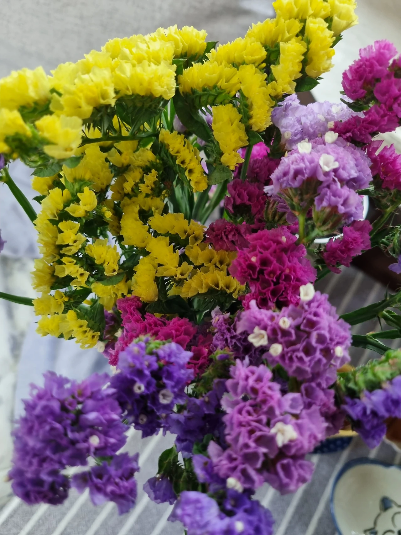 주인 아주머니는 작약의 옆에 꽂혀있던 다른 꽃을 권했다. 역시나, 나 같은 문외한은 이름을 모르는 꽃이었다. 꽃다발을 만들면 사이드로 많이 들어가는, 연보랏빛의 작은 꽃송이들이 깨알같이 달려 있는 그런 꽃. 그러나 화원의 통에는 연보랏빛만 있는 것이 아니고, 짙은 보라색, 자주색, 심지어 노란색까지 다양한 색깔의 꽃들이 꽂혀 있었다.