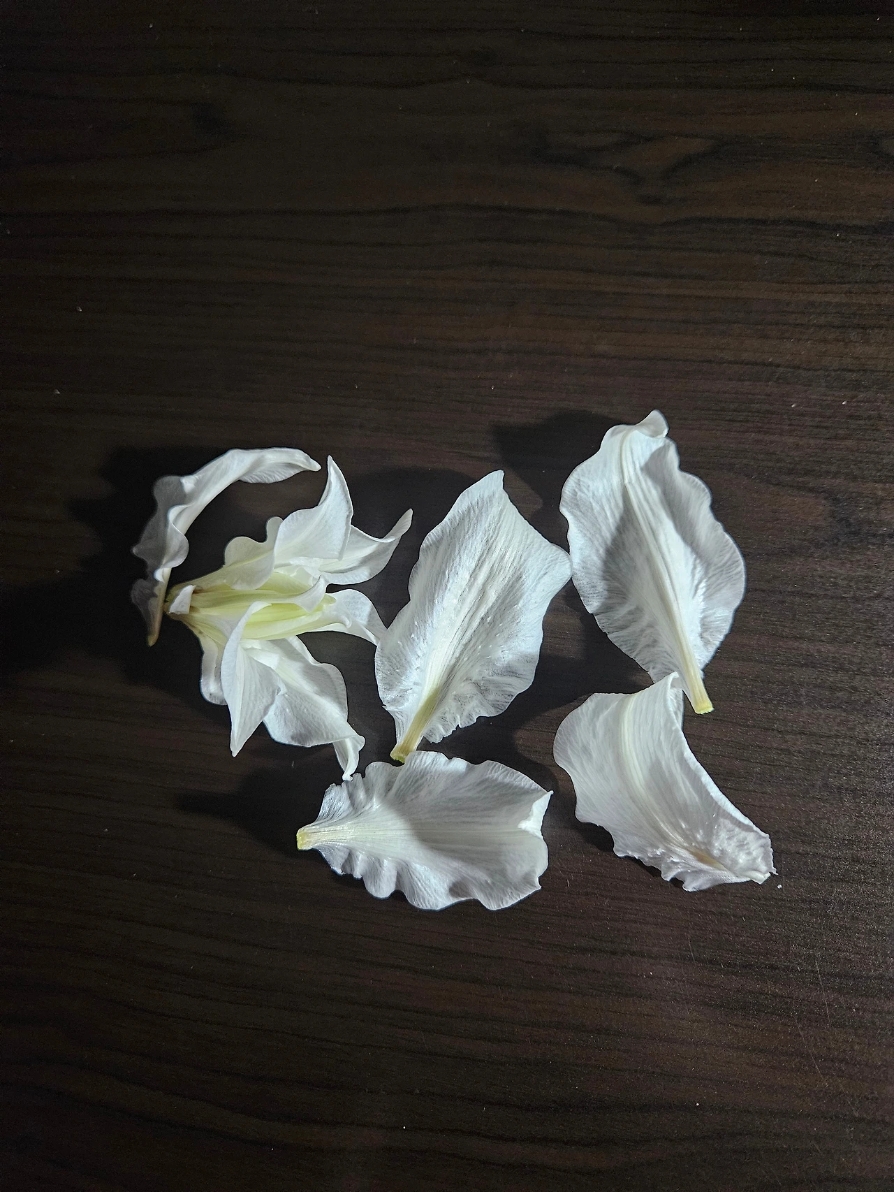 이 이야기를 하는 이유는 꽃이 지는 모양이 사뭇 다르다는 말을 하기 위해서다. 백합 또한 꽤나 오래 나의 꽃쇼핑 기피 리스트에 올라 있었는데 그 이유인 즉 지는 모습이 작약에 비길 바는 아니지만 제법 충격적이기 때문이었다. 백합은 '목이 부러지면서' 시든다. 꽃줄기가 활짝 핀 꽃의 무개를 감당하지 못해 슬슬 버거워하는 낌새를 보이다가 기어이 목이 부러지고 마는 것이다. 그래서 정작 떨어진 백합꽃 그 자체는 꽤 원형을 유지하고 있는 경우도 많아서, 이건 또 추하게 지는 모습을 보이고 싶지 않다는 이 녀석 나름의 마지막 자존심인가 하는 생각을 하게 된다.