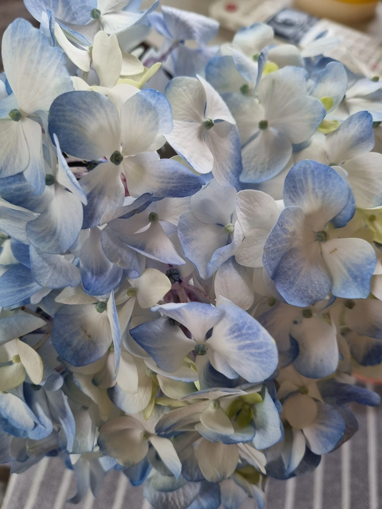 두 번째는 바로 어젯밤이었다. 이번 주 월요일, 상담을 갔다 돌아오는 길에 나는 언제나처럼 화원에 들러 이번 주에는 또 무슨 꽃을 사다 꽂을까를 고민했다. 그때 내 눈에 마치 솜사탕처럼 몽글몽글하게 부풀어 오른 연하늘색 수국이 들어왔다. 아, 예쁘다. 그날의 꽃구경은 그냥 거기서 끝나고 말았다. 나는 수국 한 송이―그러니까 그 몽글몽글한 꽃들이 전부 하나의 꽃대에서 나온 거였다―를 사들고 집으로 돌아와 꽃대와 잎을 다듬어 꽃병에 꽂아 두었다. 며칠간 방안을 드나들며 그 수국을 볼 때마다 기분이 좋아졌었다.