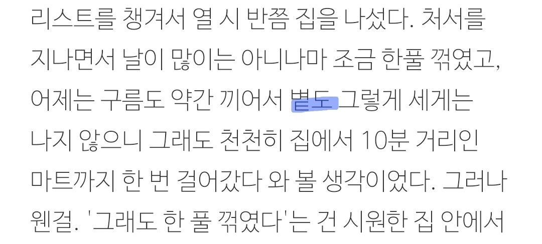 그래서 결국 이 모든 원망의 화살은 죄다 '그깟 거 하나도 제대로 못 잡아내는 맞춤법 검사기를 달아놓은' 애먼 브런치를 향한다. 아니, 누가 봐도 오타잖아. 구름이 끼어서 볕이 안 나는 게 맞지 변이 안 나는 게 맞냐고, 명색이 글 게시해서 사업한다는 플랫폼에서 이런 것도 못 잡아내는 맞춤법 검사기를 달아놓으면 어떡하냐고 나는 괜히 브런치에 대고 신경질을 냈다. 하기야 '몰라보게'를 '놀라보게'로 오타 내는 것도 못 잡아내는 맞춤법 검사기 수준이 그렇지 뭘. 내 눈이 나빠졌고, 그래서 오타가 많이 늘었다는 인정을 순순히 하는 대신 괜히 그렇게 입을 삐죽거린다. 브런치 진짜로 안 되겠네.