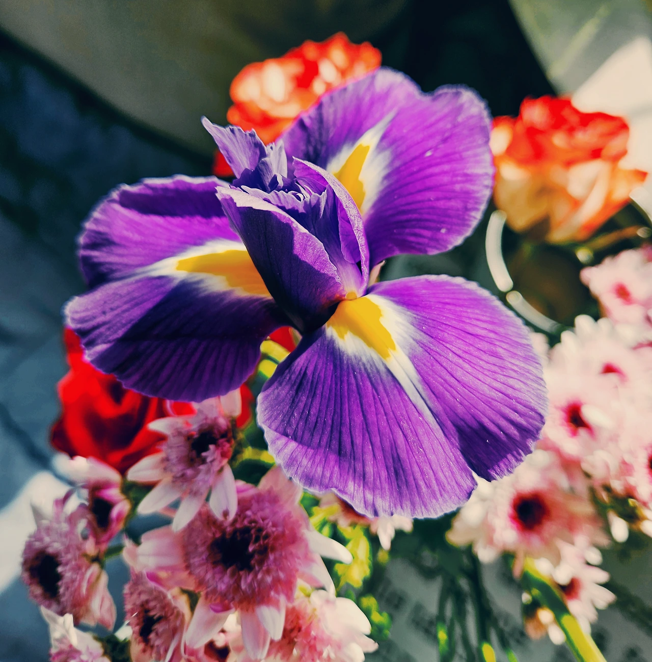 그런데 이번 유찰꽃에는 생각지도 못한 다크호스가 한 송이 있었다. 아이리스라고도 하는 붓꽃이다. 붓꽃이라고 하면 바디워시나 샴푸의 패키지에도 워낙 많이 그려져 있어서 익히 잘 아는 꽃의 범주에 들어가기는 한데, 지난 2년 간 그렇게나 꽃을 사다 나르면서 단 한 번도 내 눈에 띈 적이 없어 사 본 적이 없었다. 이야. 귀한 손님이 오셨구나. 그런 생각을 하며 얼른 빈 꽃병에 물을 담고, 다른 꽃보다 제일 먼저 줄기를 다듬어 꽃병에 모셨다.