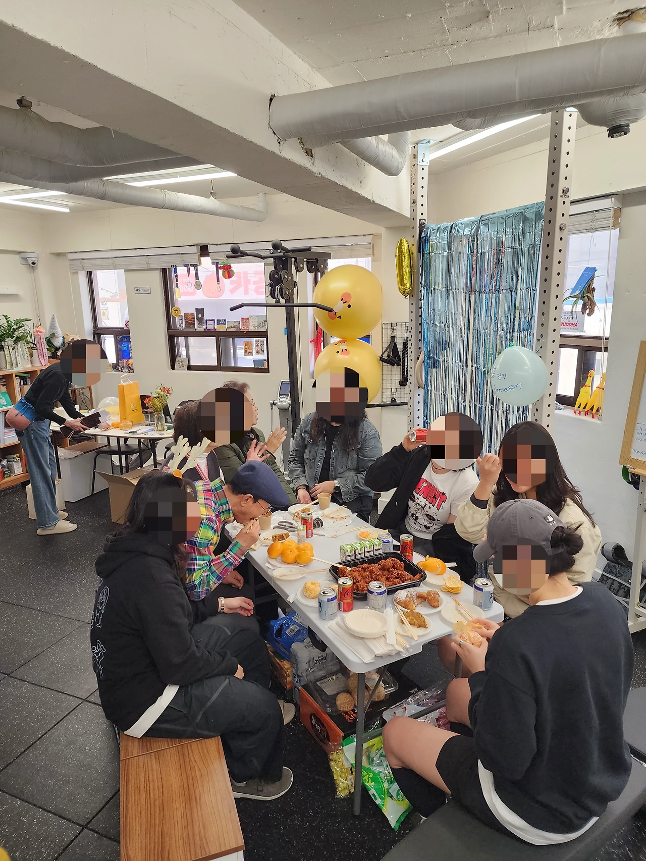 동업자 선생님이 전날 미리 장을 봐 둔 음식들을 테이블에 세팅할 무렵, 회원님들이 하나둘씩 오시기 시작했고, 이미 와 계신 분들은 자연스럽게 새로 오신 분들을 맞이해주셨어요. 이번 1주년 파티는 ‘우리가 준비한 행사’라기보다 정말로 ‘함께 만드는 시간’이었달까요.