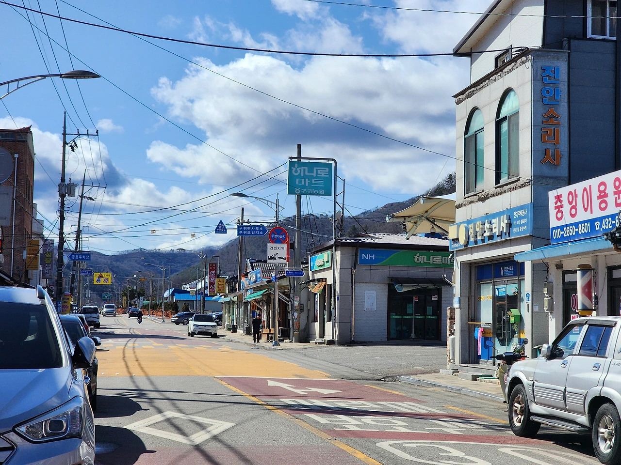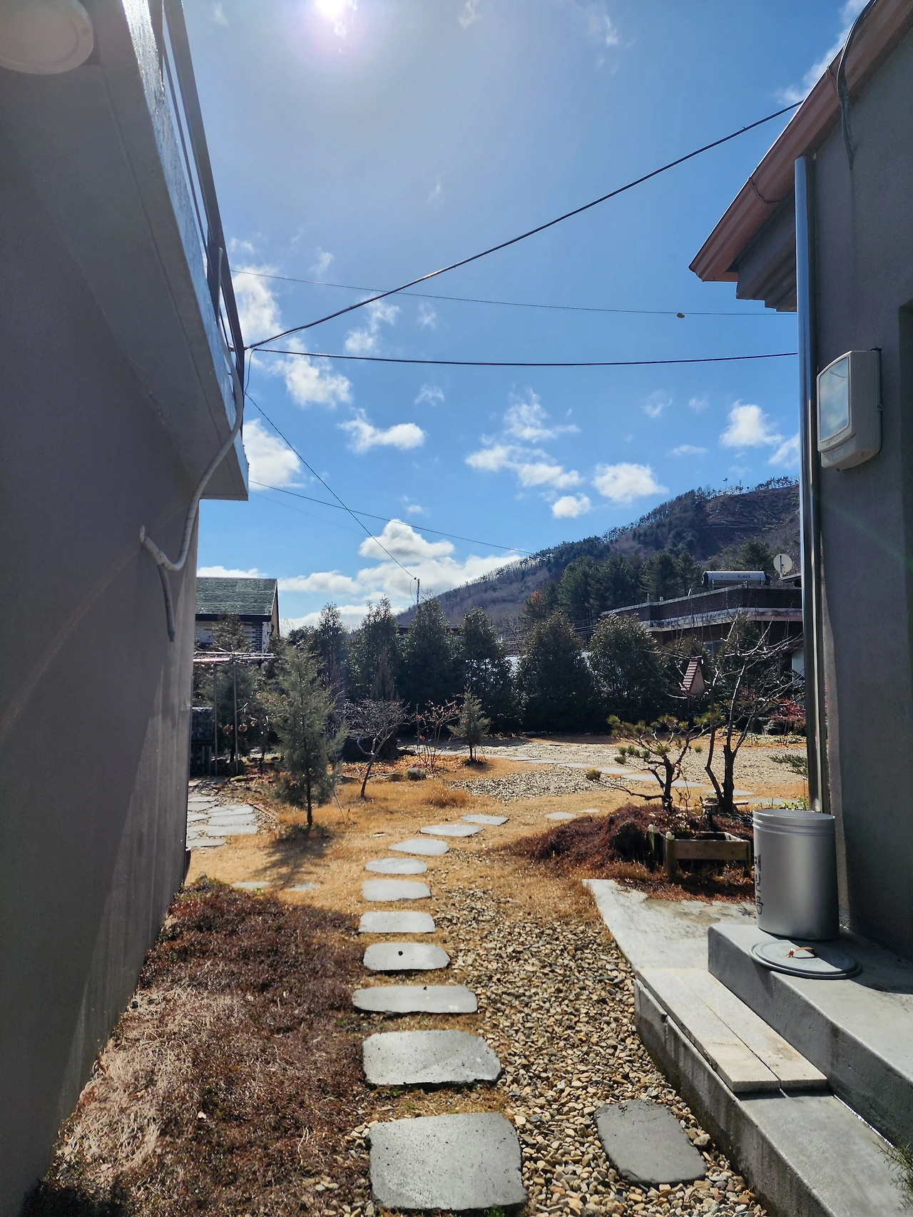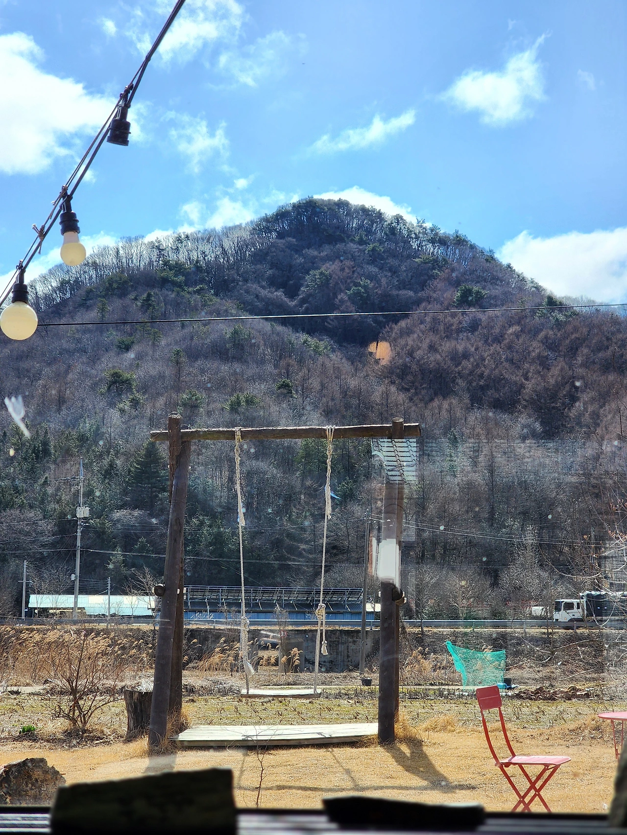 작년에 이곳에 왔을 땐 여름으로 넘어가기 전이라 그런지 주변이 싱그러운 연두빛이었는데, 올해는 이제 봄으로 넘어가기 전이라 아직은 앙상한 가지들이 제법 보인다. 같은 공간을 다른 계절에 와서 보니 색다른 맛이 있다. 그리고 높은 건물 대신, 높은 산과 나무만 있다. 빽빽하게 붙어 있는 건물들과는 다르게 집과 집 사이의 간격이 느슨하다. 조용하고, 평화롭다.