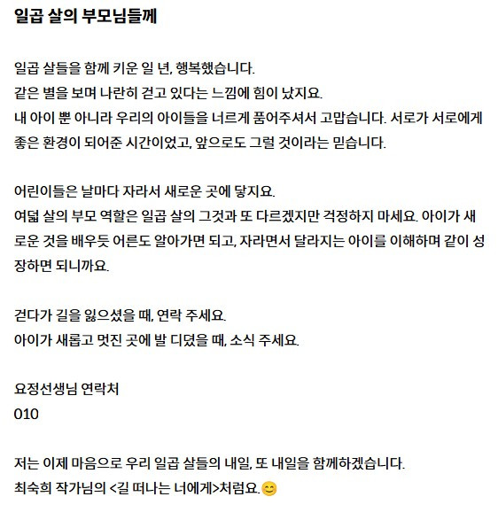 진정한 일곱 살반 알림장