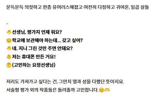이런 말이 나오면 자신이 완성한 작품이 마음에 드는 겁니다.