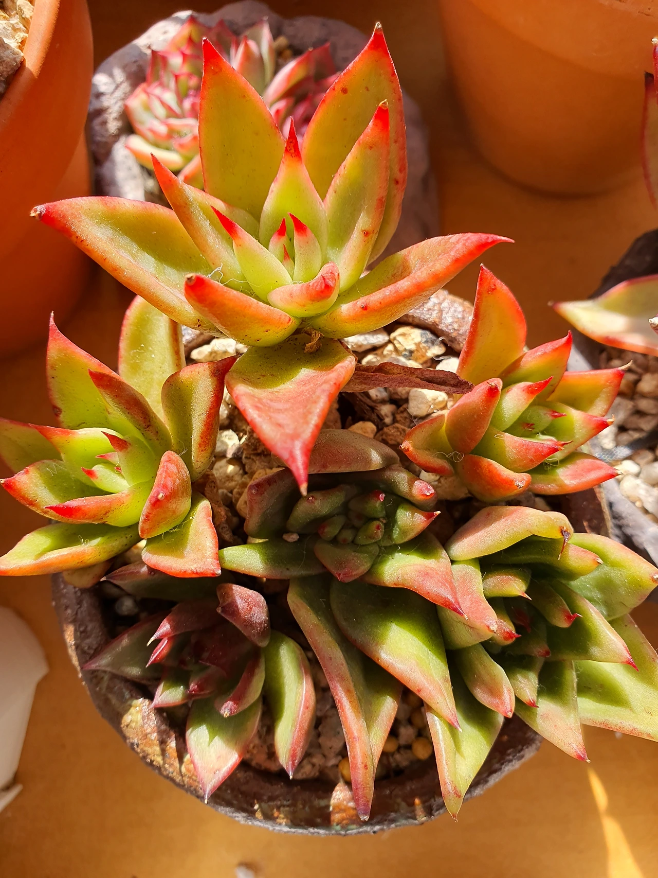 수분으로 채워져 있는 다육이들은 겉 잎장부터 하엽을 만들고 공중습도로 겨울을 버티고 있다.