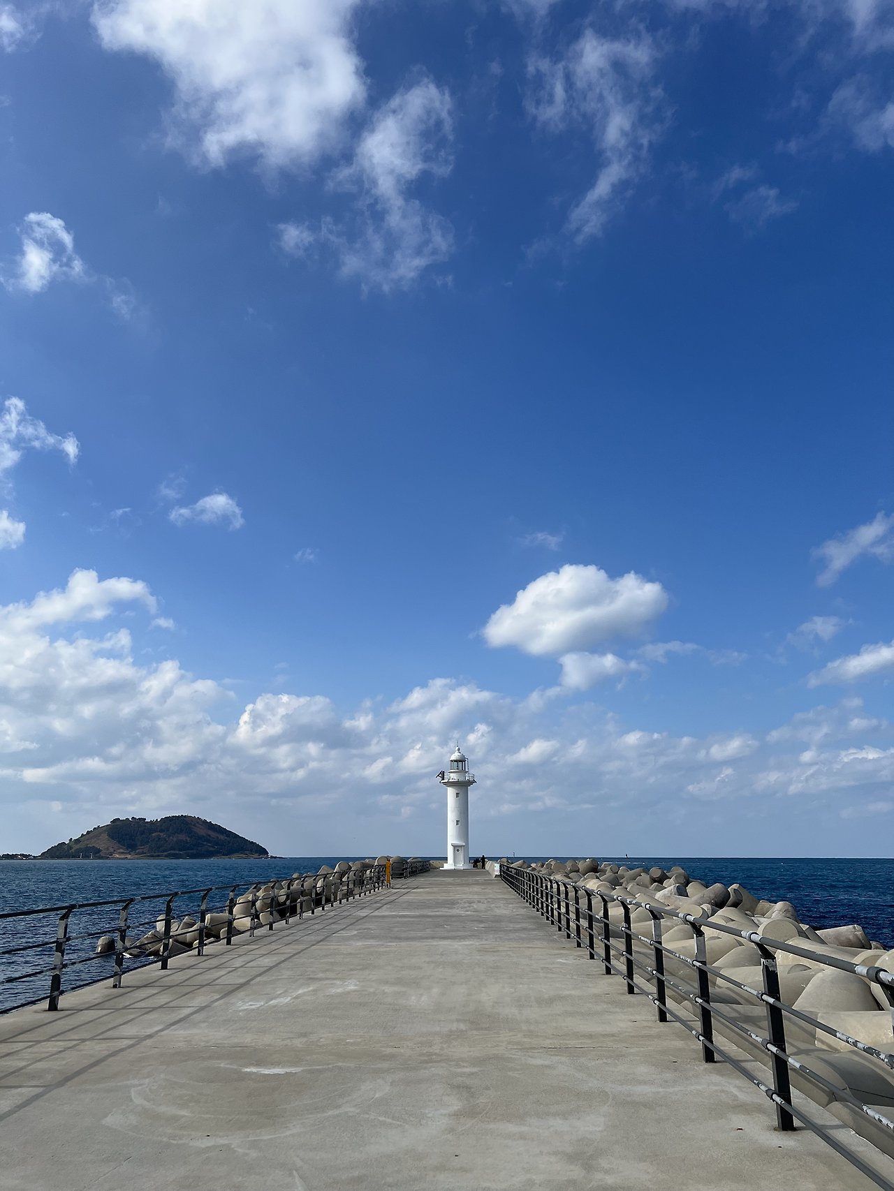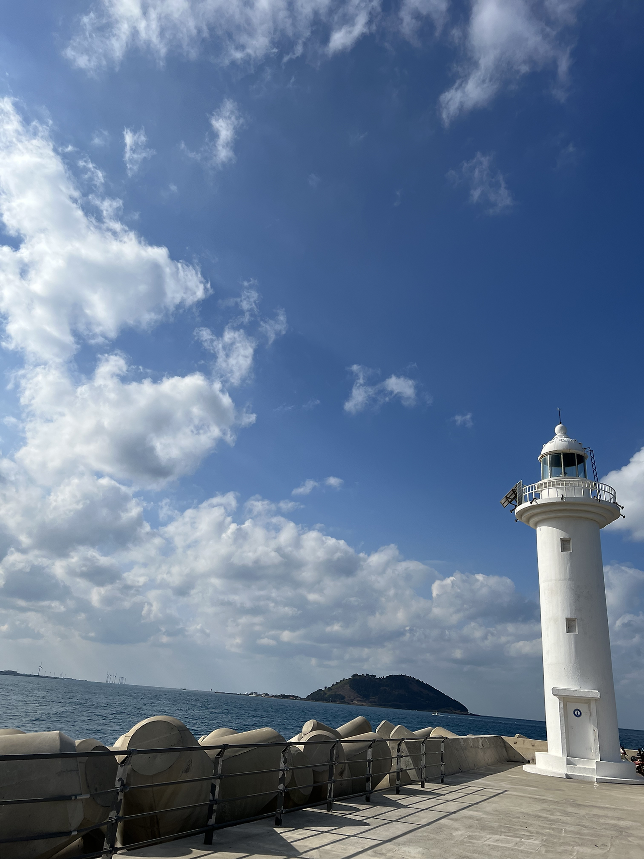 꽤 긴 방파제였다. 등대까지 걸어가보니 비양도가 가까이 보였다.