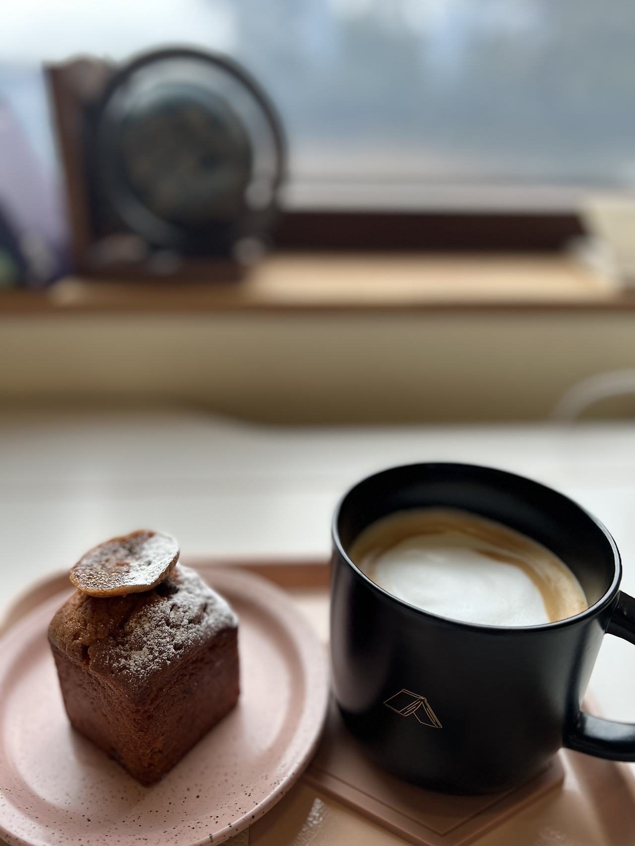 심야식당 21번을 읽으면서, 주문한 카페라떼와 무화과 파운드 케익을 먹었다.