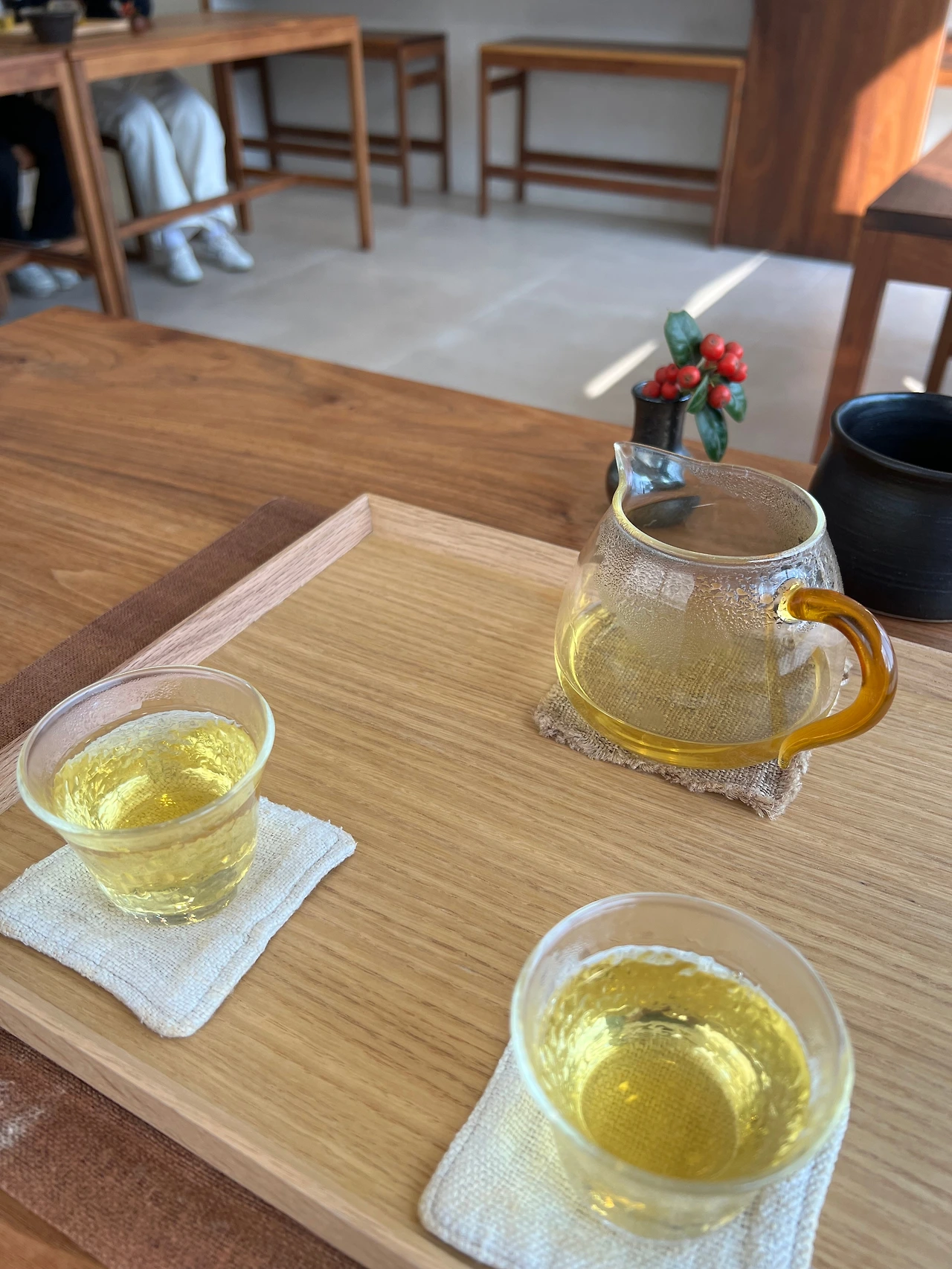 우리 팀 말고 3팀이 더 있었다. 가족팀, 친구팀, 연인팀, 그리고 직장동료팀인 우리 이렇게 4팀이 같은 체험을 했다. 녹차, 황차, 홍차를 마셔보고 말차는 만들어 보는 시간을 가졌다.