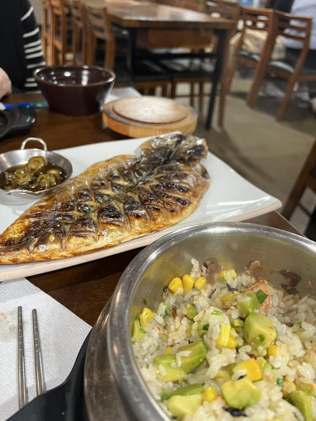 아보카도명란솥밥과 고등어구이를 주문했다. 여긴 깔끔해서 좋다. 역시 요리를 잘하는 언니는 잘 먹어놓고 나오면서 ‘비리다, 느끼하다, 내가 한 밥이 더 맛있다 ' 이런 느낌의 말을 꼭 한마디 한다