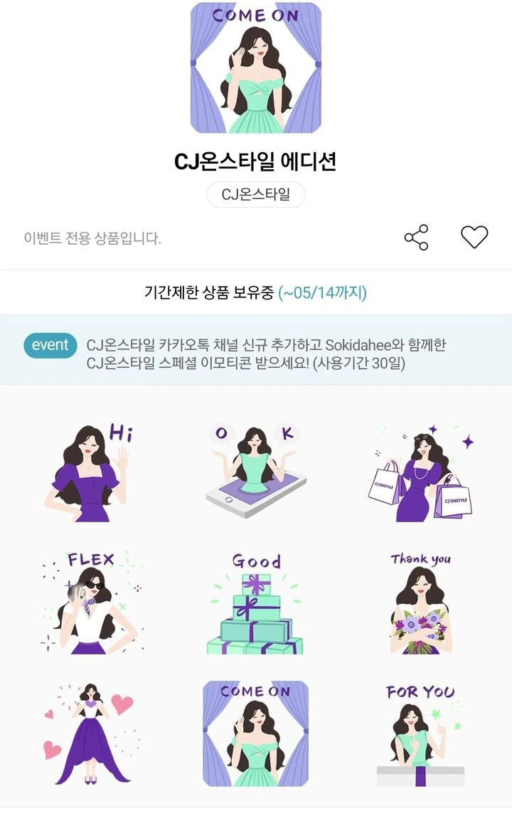 그녀와 대화가 끝나면 이모티콘을 한 번 톡 쳐서 화살표를 따라 들어간다. 그렇게 나도 공짜 이모티콘을 다운 받는다. (기간 한정 이벤트라 이벤트 끝나기 전 다운받는 것이 포인트)
