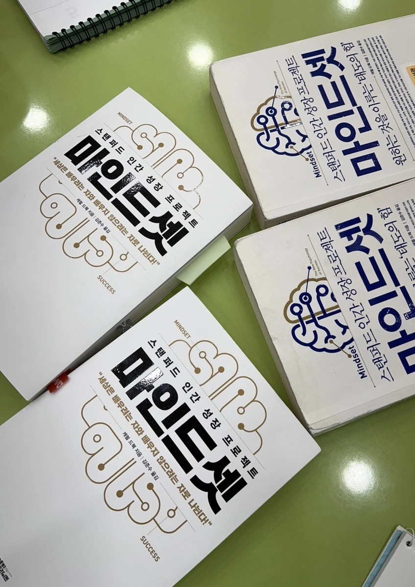 독서모임에서 <마인드셋>을 함께 읽고 이야기를 나누었다. 책을 읽고 느낀 점을 한 문장으로 표현한다면 "성장 마인드셋으로 살자“였다.