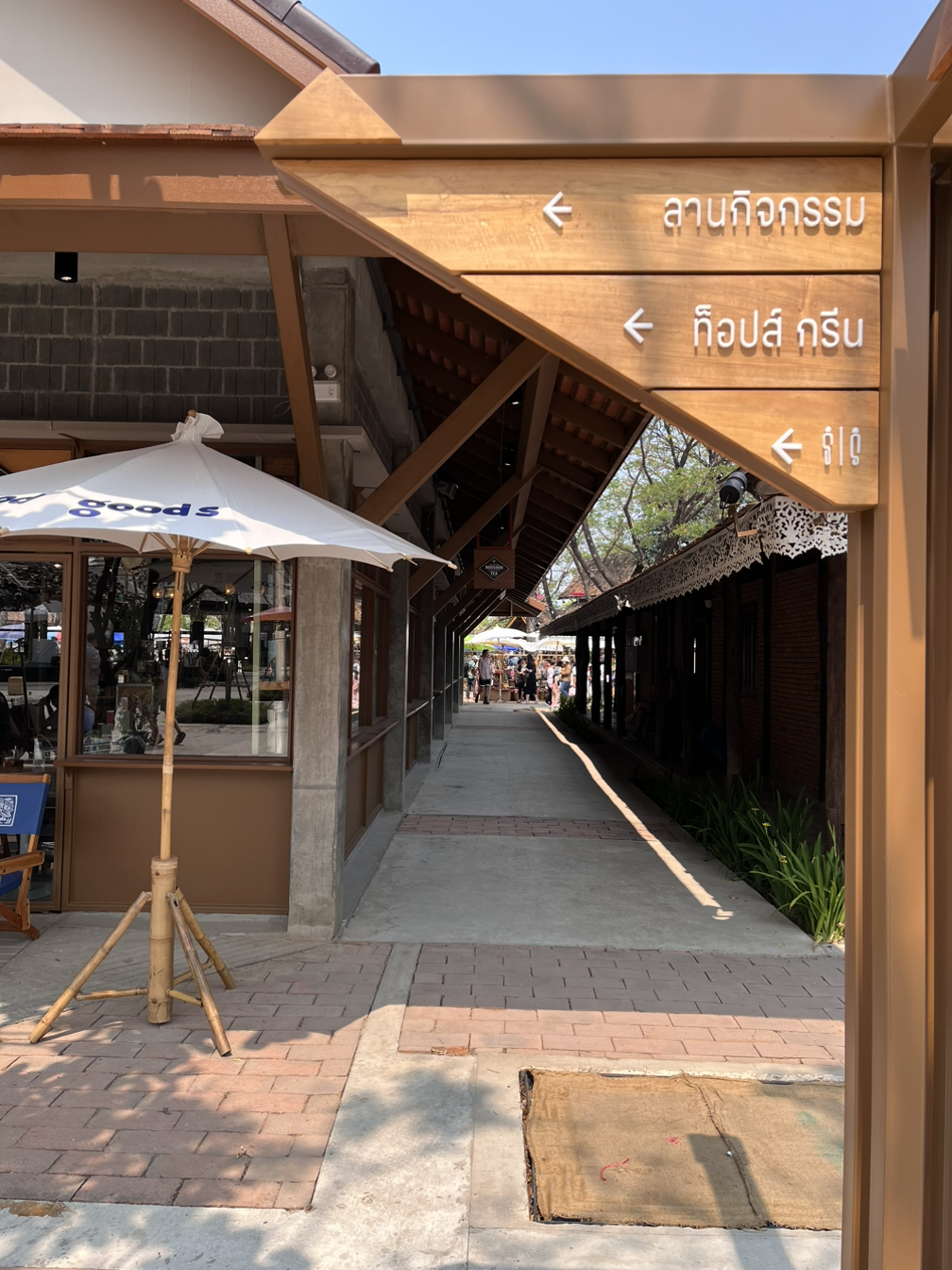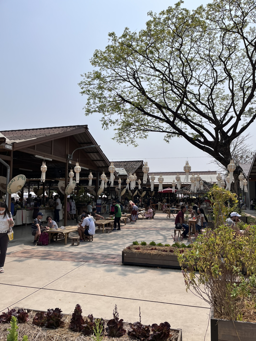 야외에 파라솔을 쳐 놓고, 라탄가방, 의류, 귀걸이, 가방, 스카프 등의 수공예품을 판매하는 곳도 있었고, 건물 안에서 물건을 팔기도 했다. 세련된 시장의 느낌으로 우드톤이 멋스러웠다. 진짜 치앙마이에 온 것 같았다.
