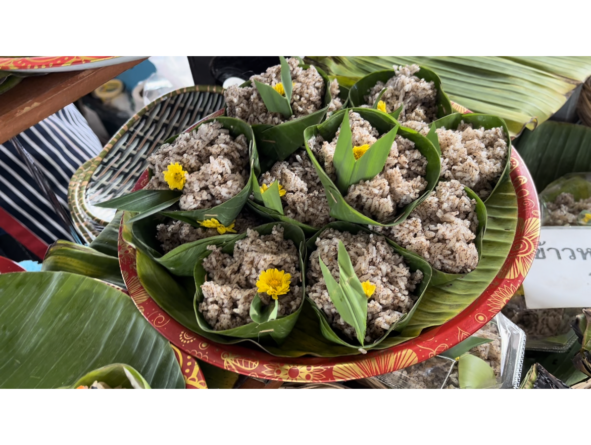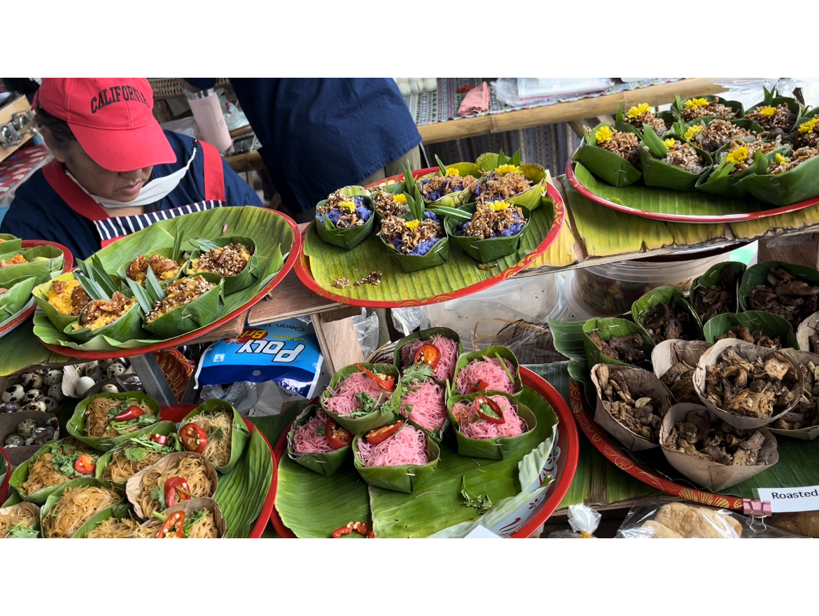 징자이 마켓 안에 식재료와 음식을 파는 곳도 함께 있었다. 자연친화적인 치앙마이에서는 처음 보는 음식들도 많았고, 바나나도 비닐봉지가 아닌 끈 하나를 껴서 들고 갈 수 있게 했다. 국내 도입이 시급한 포장법이었다. 이토록 미니멀한 포장법이 있었다니....