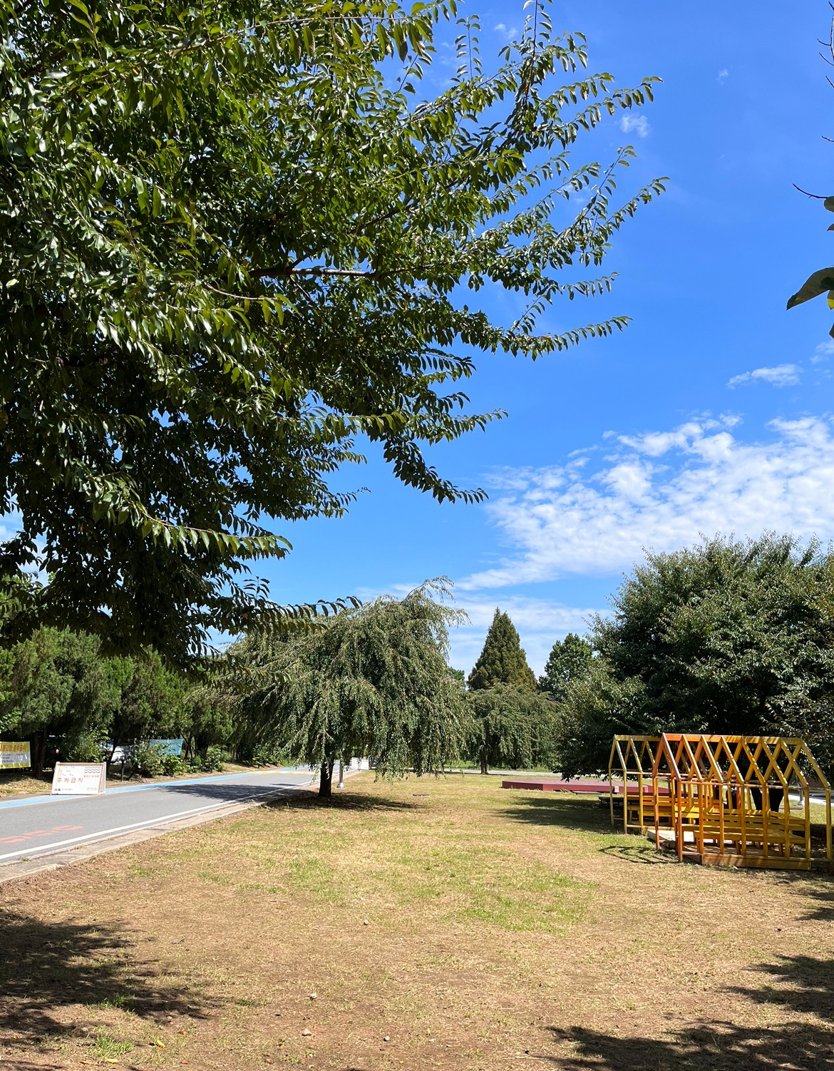 바람소리, 나뭇잎이 서로 부딪히는 소리, 새소리, 자전거의 바퀴 소리를 온전히 들을 수 있어서 좋다. 모든 소리를 매미에게 양보하지 않아도 되는 계절이다.
