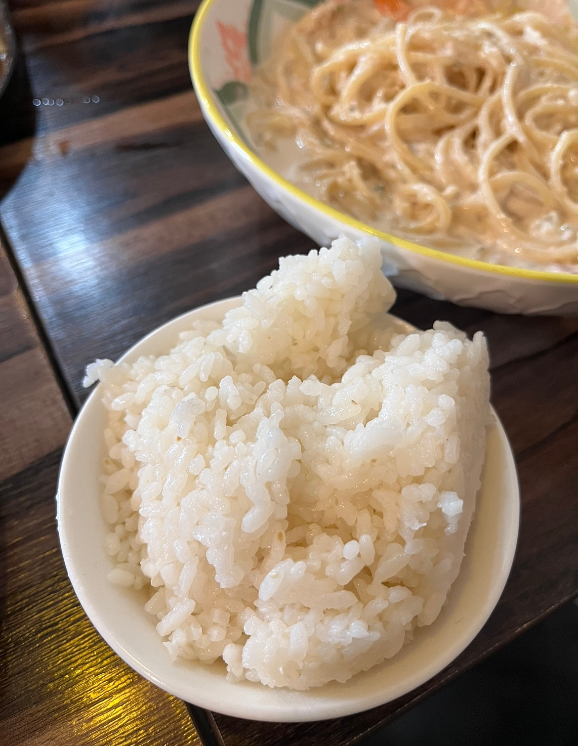 “아까 죄송해요. 이 밥을 크림파스타에 비벼 드시면 리조또 같을 거예요.”