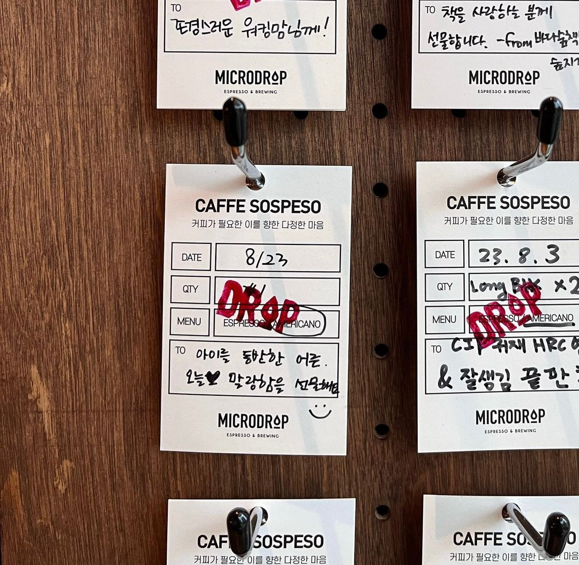 수업 후, 책방지기님 소개로 같은 상가에 에스프레소바가 생겨서 처음 에스프레소를 먹어보았다. 책에서만 보던 ‘카페소스페소(이탈리아의 커피 나눔 문화로 누군가의 커피값을 미리 지불하여 마음을 나누는 것)’를 직접 경험해 본 게 특별했다. (나는 카드에 카페에 오는 손님 중, 아이를 동반한 어른이라고 적었다. 그 다음 주 토요일, 병원에 가서 아이 주사를 두 대 맞추느라 지친 엄마가 커피쿠폰을 썼다고 했다.)