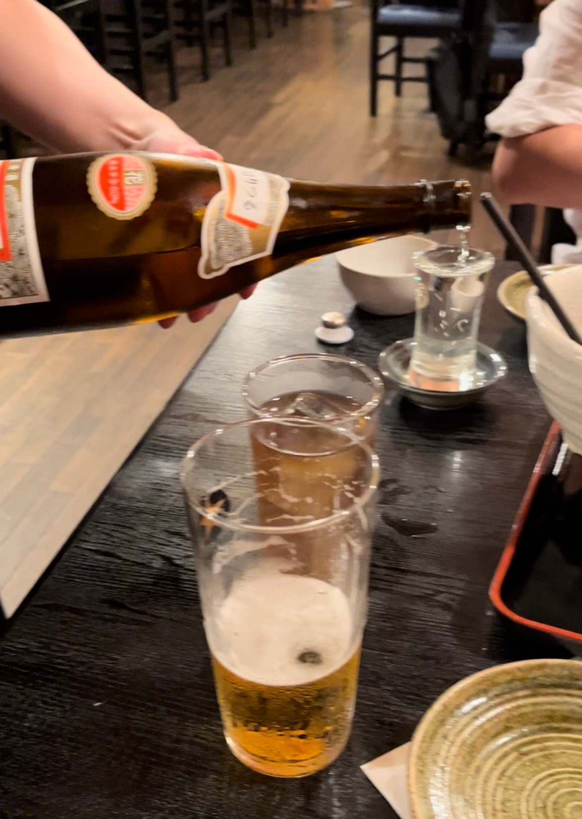 우리는 처음 본 광경에 소리를 질렀다. 술잔의 8할을 지나 컵 밖으로 술이 콸콸콸 흘러넘쳤다. 이게 무슨 영문인지 몰라 당황했다. 왜 이렇게 술을 넘치게 주는 것일까? 추측하기 시작했다. 여기 문화인 것 같은데, 어떤 의미인지를 알 수가 없었다. 새로운 문화를 접하게 되면 신기하긴 하지만, 뜻을 모라 답답함도 같이 따라왔다. 직원도 이런 리액션을 하는 우리를 웃으며 바라보았다. 우리는 서로에게 놀랐다.