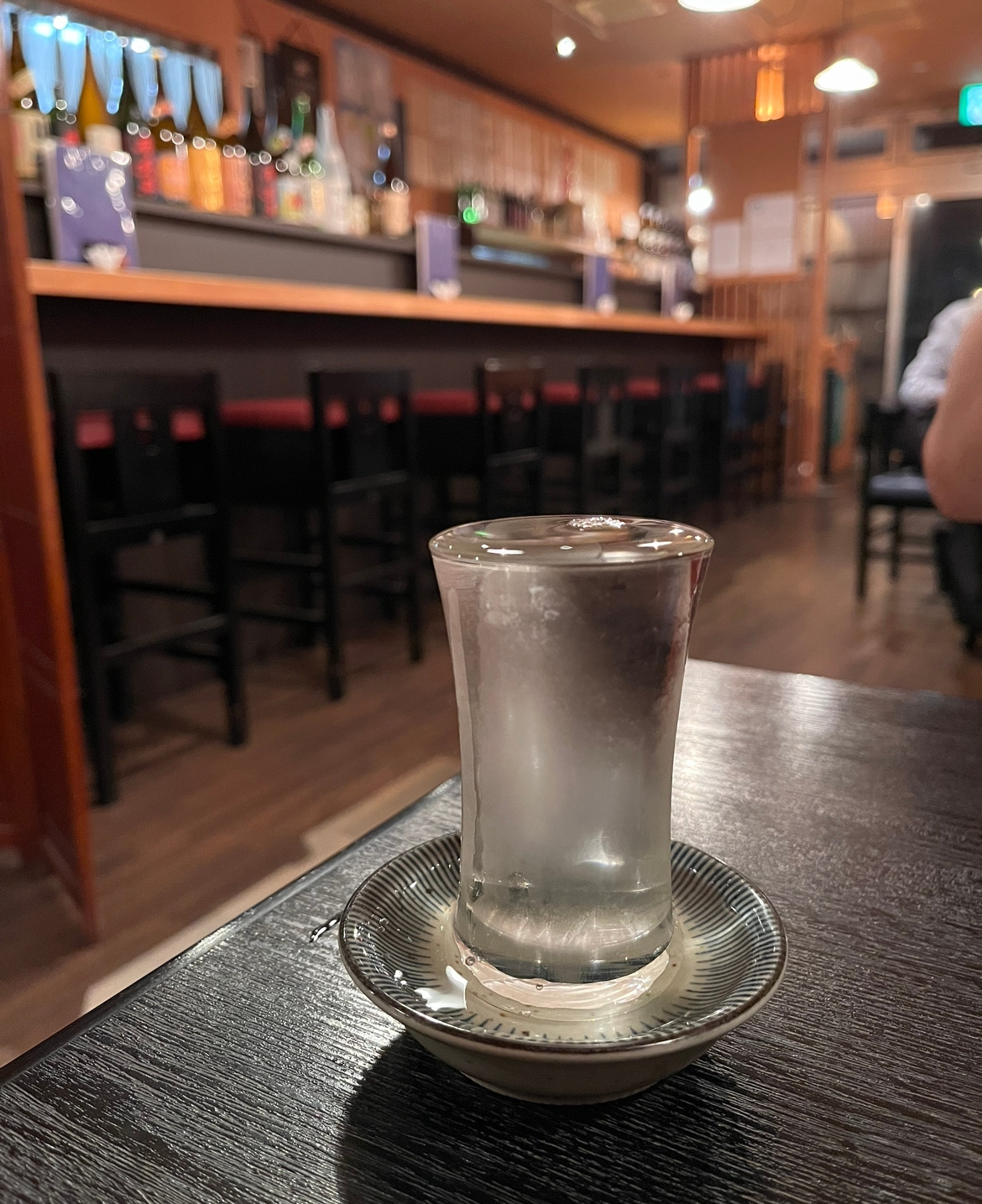 주위 테이블을 둘러보아도 알 수 없었다. 결국 종지의 술은 남겨 놓고 나왔다. 그 장면이 궁금해서 일본에 사는 지인에게 물었다. 알고 보니, 콸콸 넘치게 술을 따라 주는 것을 '못키리'라고 하는데, 조금이라도 더 많이, 더 즐겁길 바라는 이자카야 주인장의 마음을 담은 것이라고 한다. 넘친 술은 원래 술잔의 술을 마신 후, 잔에 채워서 마시는 것이라고 했다.