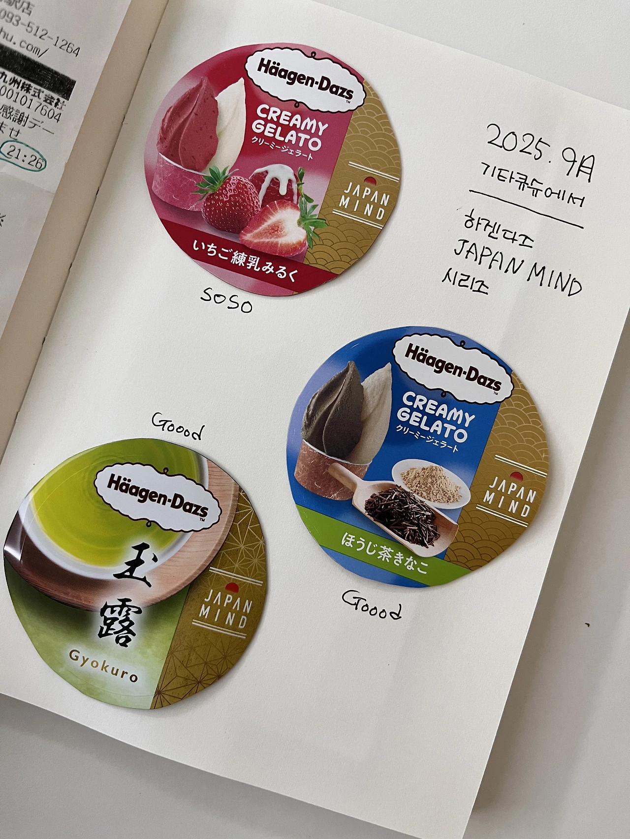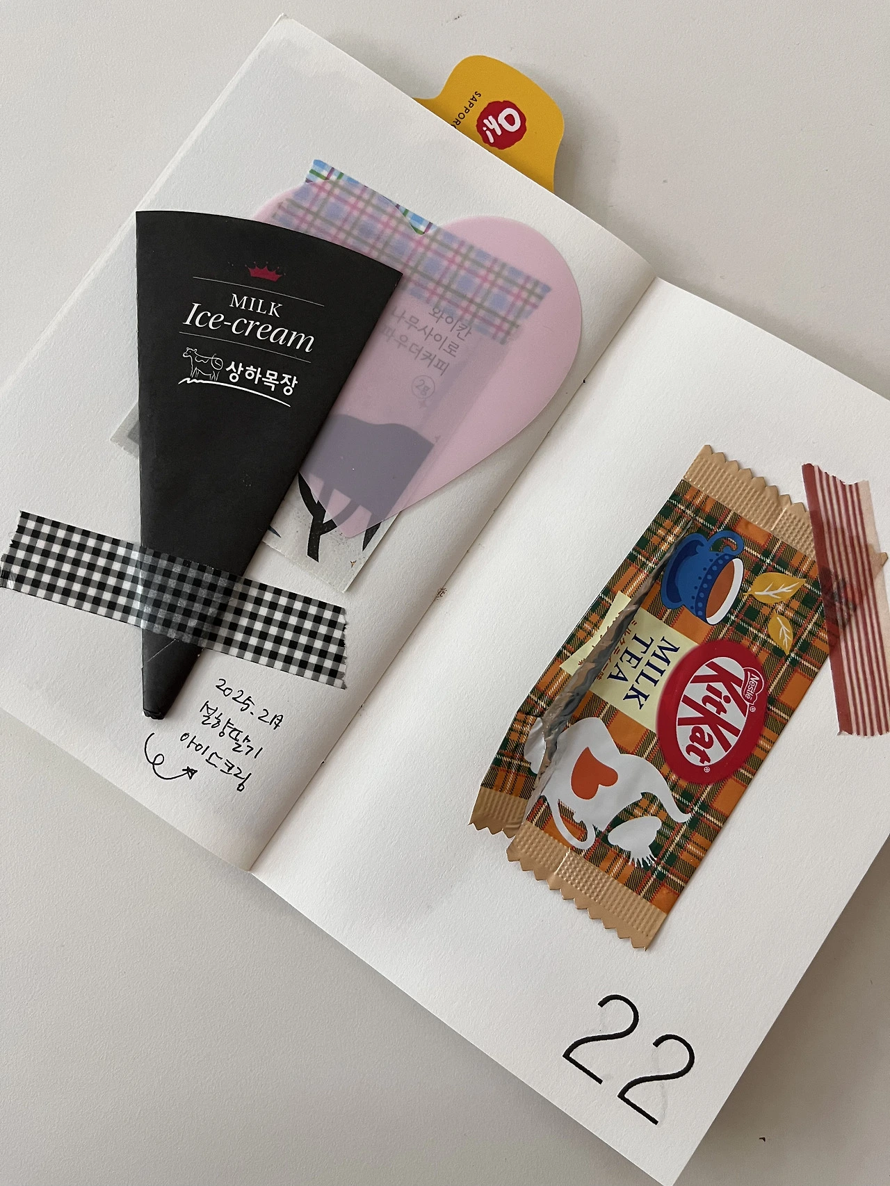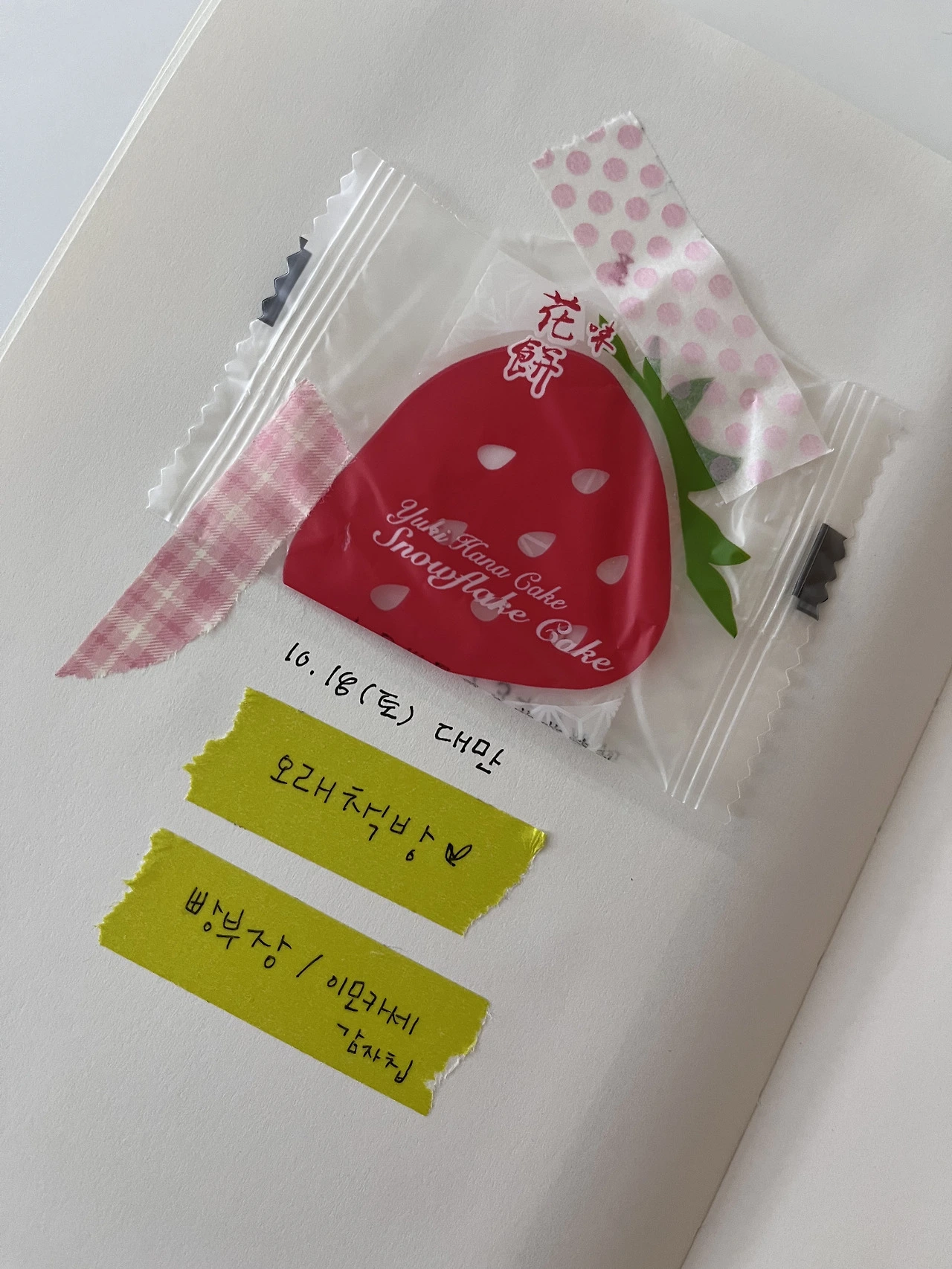 여행에서 돌아오면 다양한 간식들을 들고 친구들을 만납니다. 함께 나눠 먹으며 맛 품평회를 가집니다. 서로의 디저트 취향을 발견합니다. 그렇게 찾은 최애 과자가 삿포로의 옥수수 과자(Sapporo okaki ohi yaki-toukibi)였습니다. 도전하지 않았다면 몰랐을 간식이었죠. 기록을 통해 디저트의 맛과 우정의 세계가 동시에 확장시킵니다. 물론 실패한 과자들도 많죠. 그럴 때는 ‘좀 맛없으면 어때? 포장지는 남았잖아.’라고 생각합니다. 예쁜 포장지에 반해서 시작한 디저트 기록은 가나 초콜릿의 역사를 이어졌고, 새로운 맛을 도전하는 삶의 태도로 변했습니다. 그렇게 노트 속 디저트 포장지들이 차곡차곡 쌓여갑니다. 노트를 펼치는 것만으로도 군침이 돕니다. 여러분이 좋아하는 디저트는 무엇인가요? 그동안 먹기만 했다면 이젠 스크랩을 해보세요.
