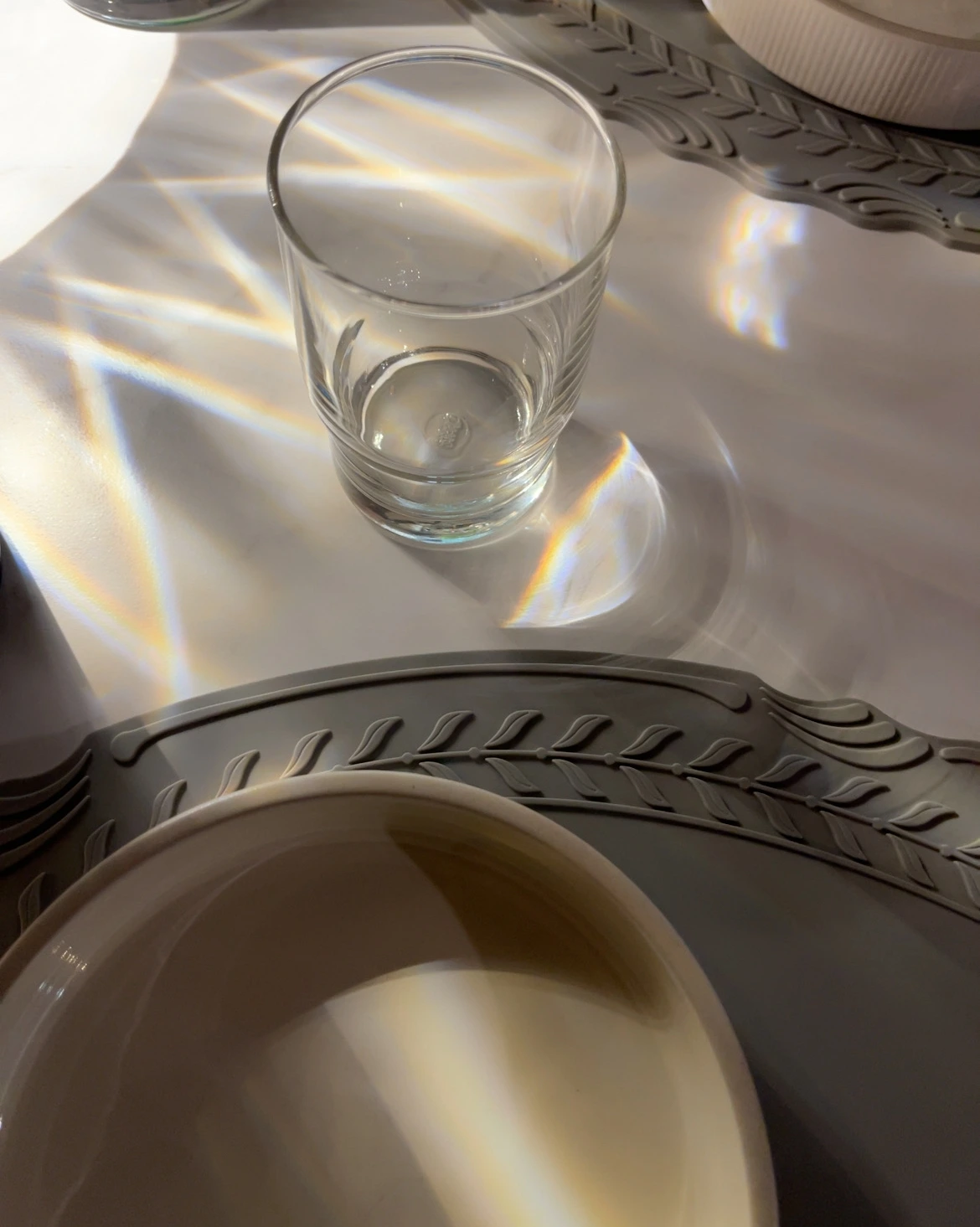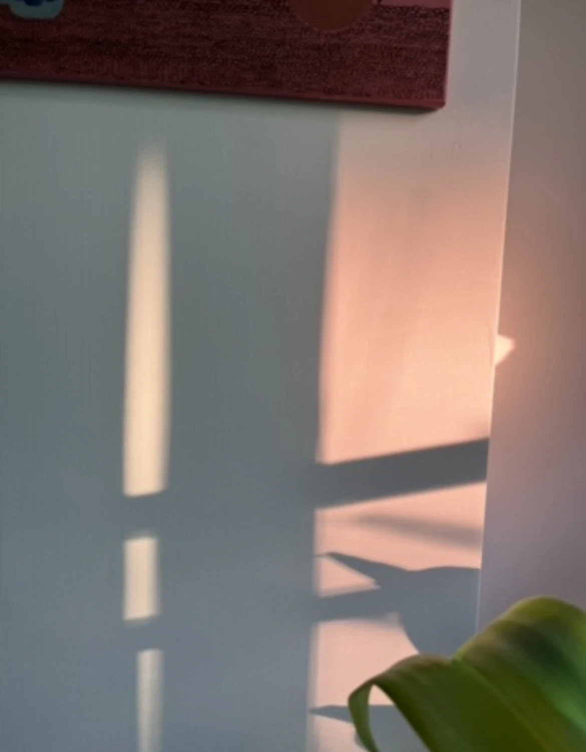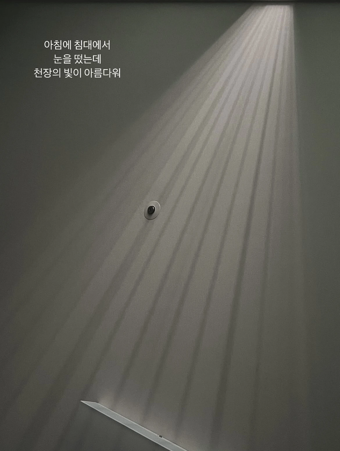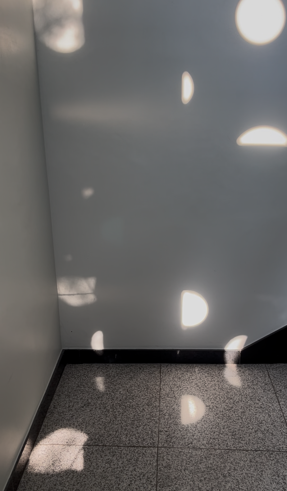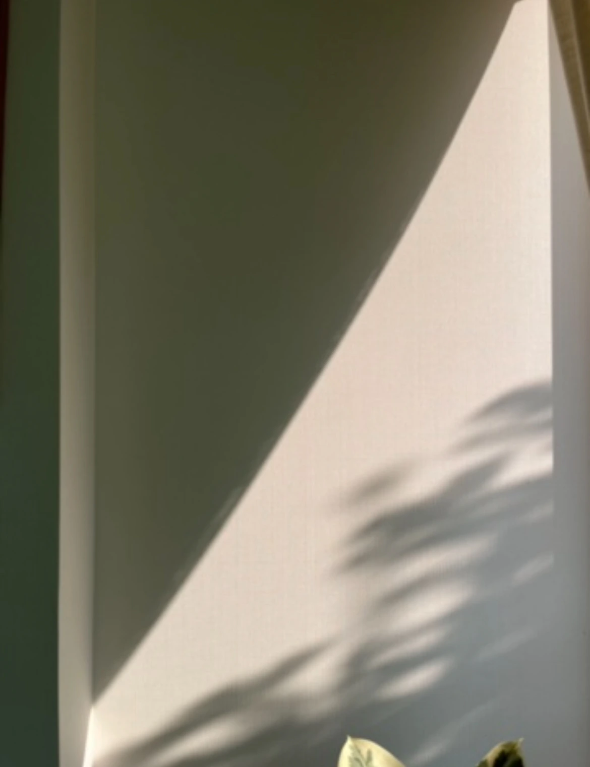 빛을 만난 순간들을 모아 기록했어요. 아침에 눈을 떴을 때, 방 천장에 다섯 개의 빛줄기가 먼저 와서 기다리고 있던 순간. 도서관을 나올 때, 귀여운 동그라미가 벽에 그림자로 새겨진 순간, 커튼에 비치는 화분의 이파리. 와인잔을 통과하며 여러 겹의 무지개 원이 생겼던 식탁 등. 빛과 그림자를 만나는 순간은 다양했습니다. 사진기록으로 모아놓고 보니 한 편의 서정시 같더군요. 그림자는 일상 속 메마른 감정을 촉촉하게 해 줍니다. 때로는 온몸을 나른하게 합니다.