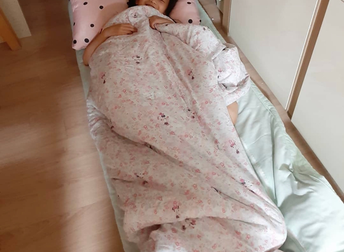 늘 방에서만 자는 건 너무 지겨워. 오늘은 주방에서 자면 안 돼?
