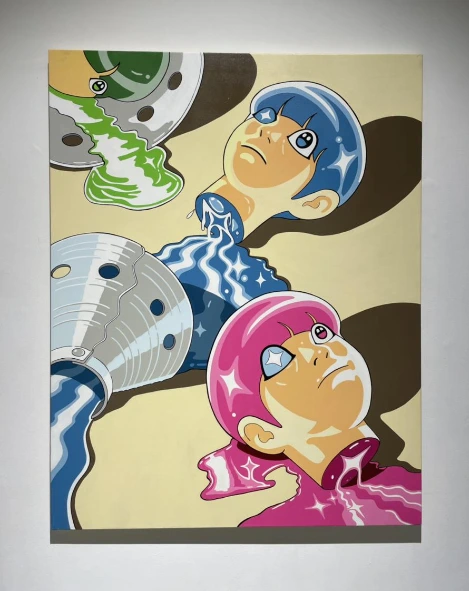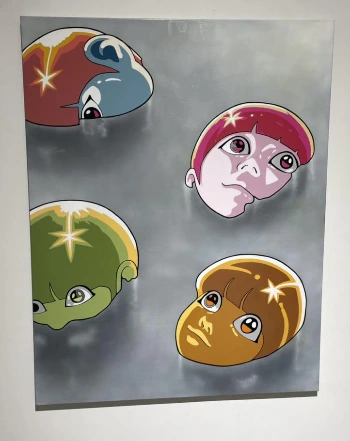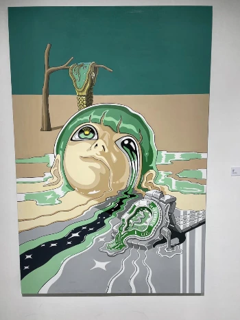 어떤 진지한 무언가 앞에서 조소와 우롱은 용납되지 않습니다. 왜냐하면 그것은 모든 것을 부식시켜 녹여버리기 때문이죠. 재잘거림과 같은 경박은 어떤 것의 의미를 상실하게 만들어버립니다. 경박이란 비극을 해체시키는 근본적인 다이어트 요소입니다. 세상이 조소로 가득 찰수록 모든 것은 그 의미를 대부분 상실한 채 앙상한 현상만 남을 뿐입니다. 이 그림에서도 웃음의 파동에 닿은 '부의 상징'들은 그 의미를 90% 이상 잃은 채 흐물거립니다. 그런 조소는 때론 자기 자신에게 향하기도 합니다. 기안84 개인전 첫 섹션은 '의미의 해체입니다'